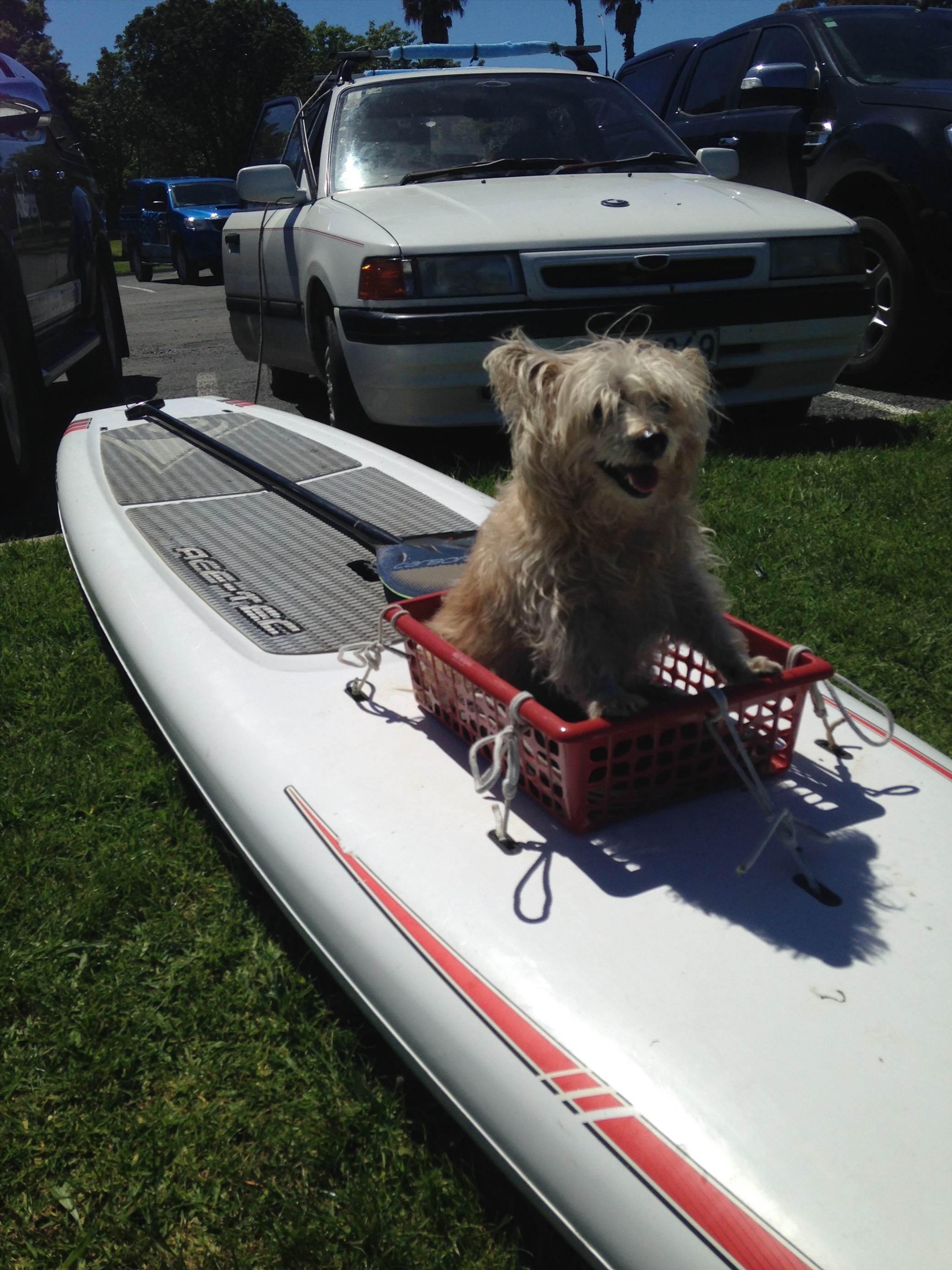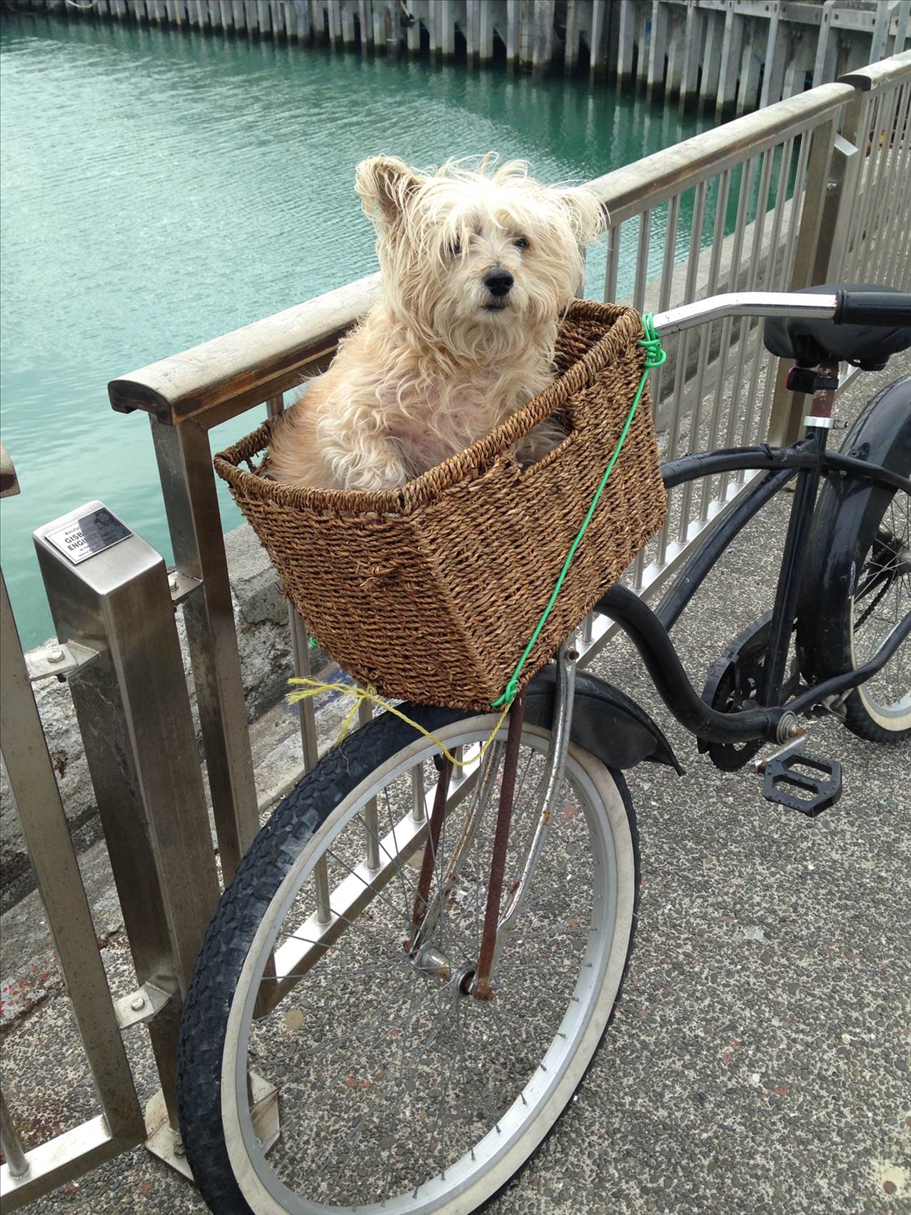 He is happy with the basket concept........has done lots of riding on bikes in baskets. Got him second hand........this seems to have removed a lot of the "where should I stand?" worries out of the situation