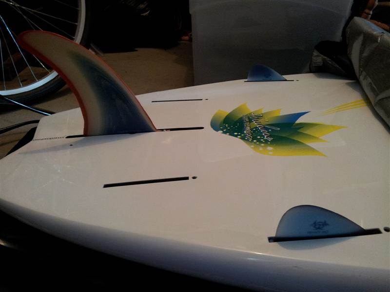I was able to surf my Hyper more aggressively on the top 1/3 of the wave face before it broke in front of me making me drop down the face & around the wash back onto the wave face & then able to do a hard left turn back into the wash to propel me right again to do the same again!. The single box fin with its side nubsters performed perfectly on this windless day, although there was some side chop from a nearby breakwall making some drops quite steep. But the excessive rocker handled these sooo easily!!! The fin arrangement made it faster & grabbed better in turns. I don't think I will change it.