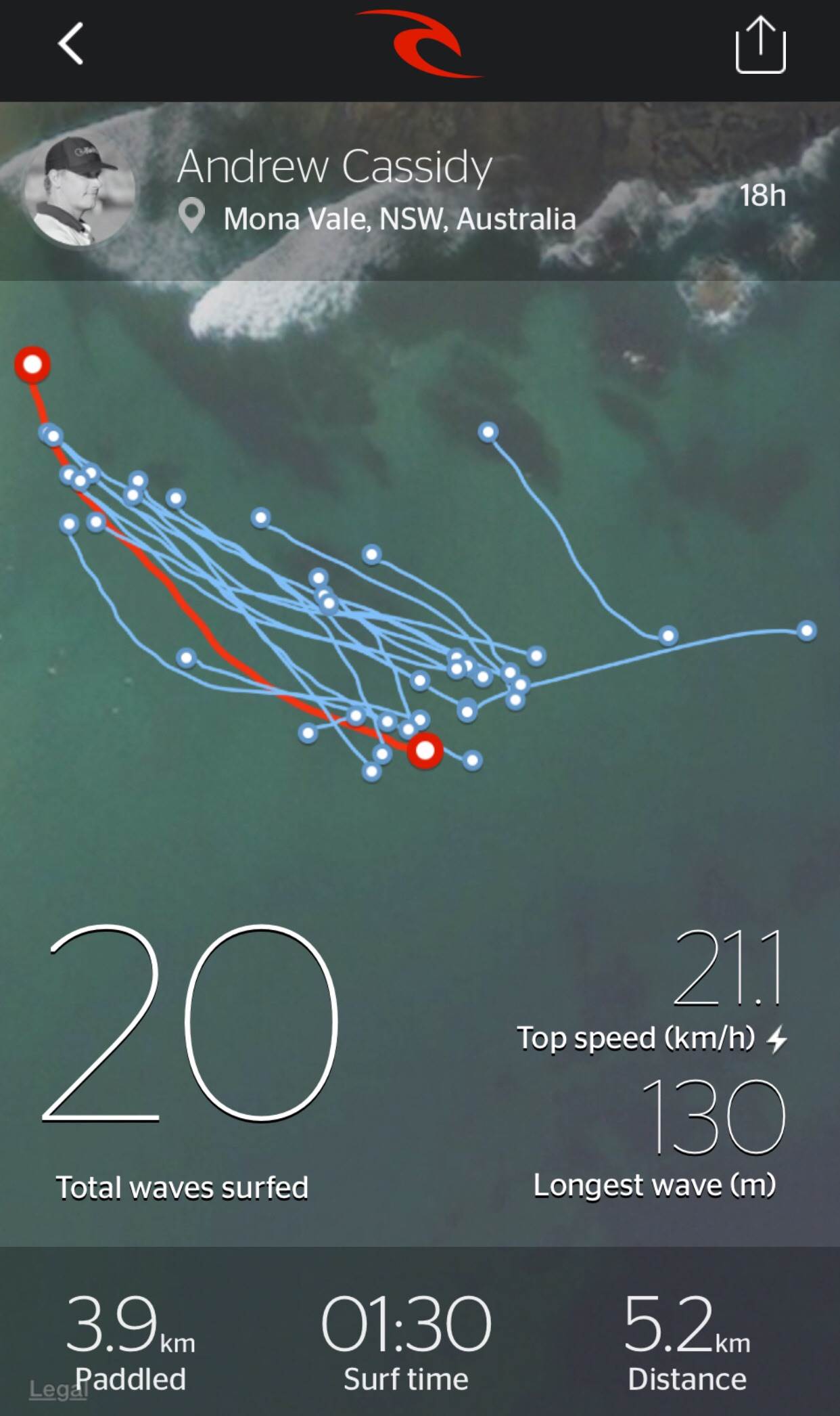 A shot of turn two on that 8.17 wave, just before the tail released:
