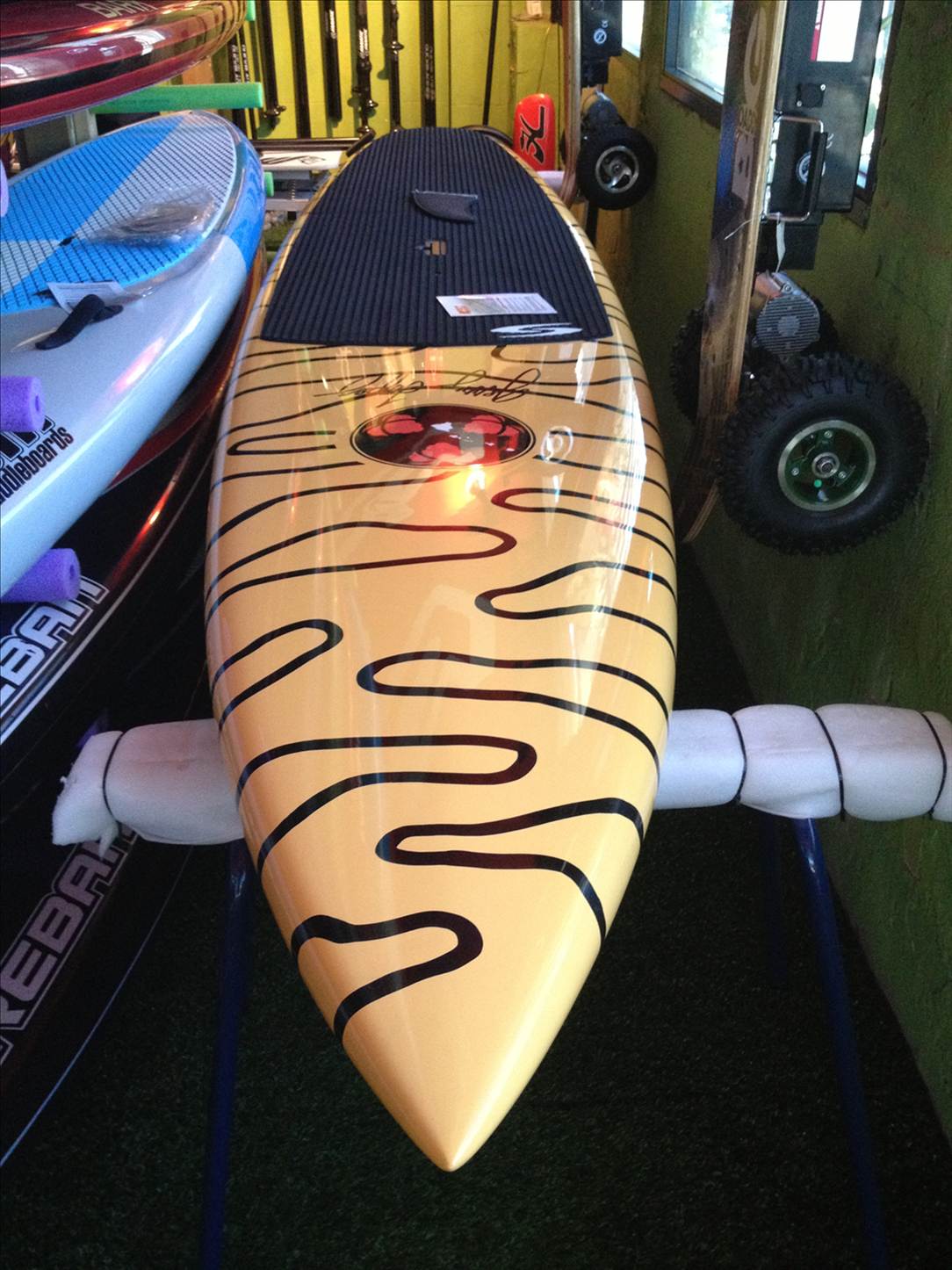 We had a very exciting delivery today from Surftech. Lots of Barks and such which are all very exciting, but this is the first time we have seen the 14ft Gerry Lopez Kaiwi Kai Downwinder board.