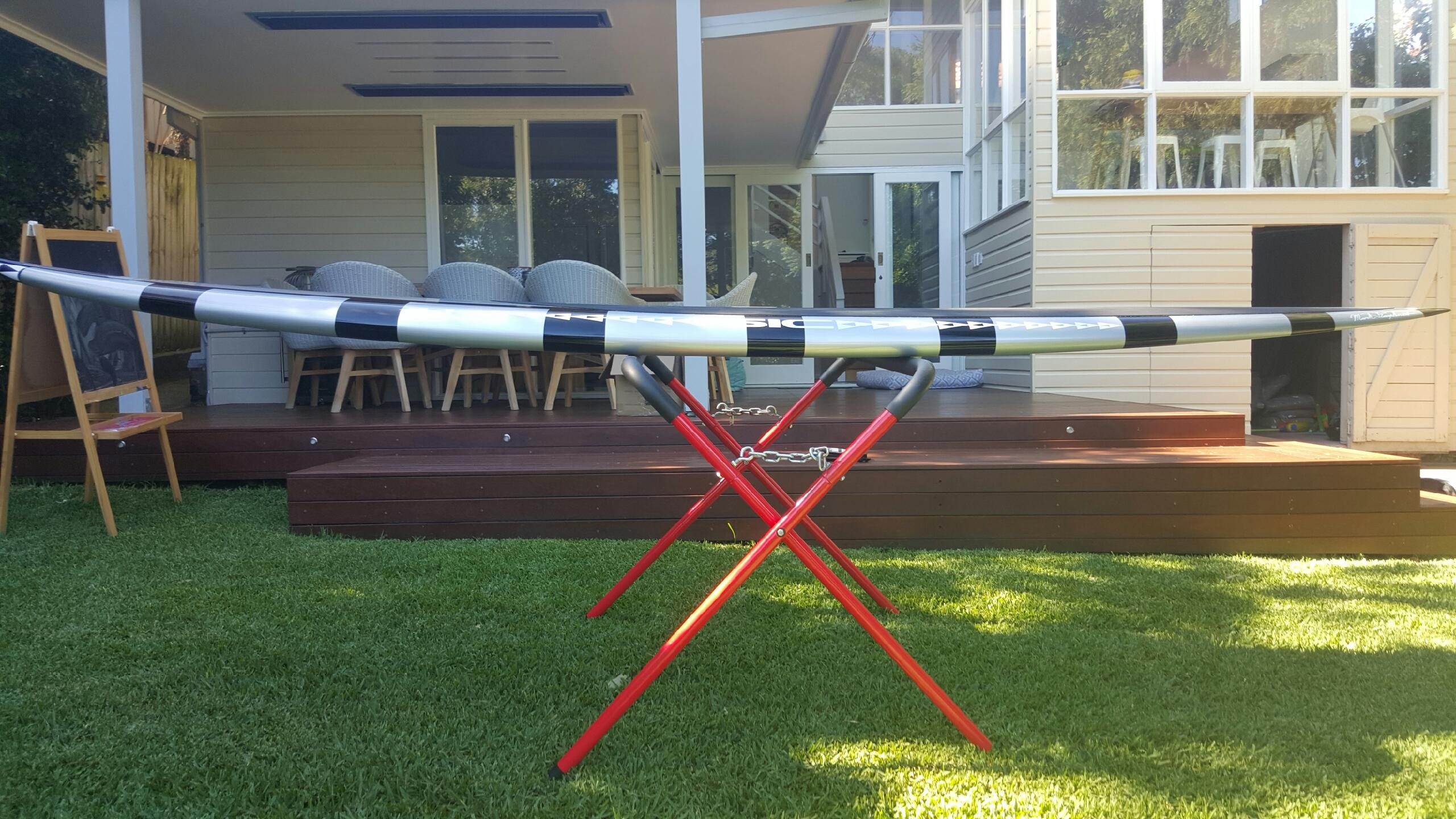 she finally arrived today ready for a sesh when the bombie or bower wakes up properly + yes Helmy that's the shed in the background! 12'6 x 27... oh happy hold down! I don't know wether to ride her, take her to bed or both