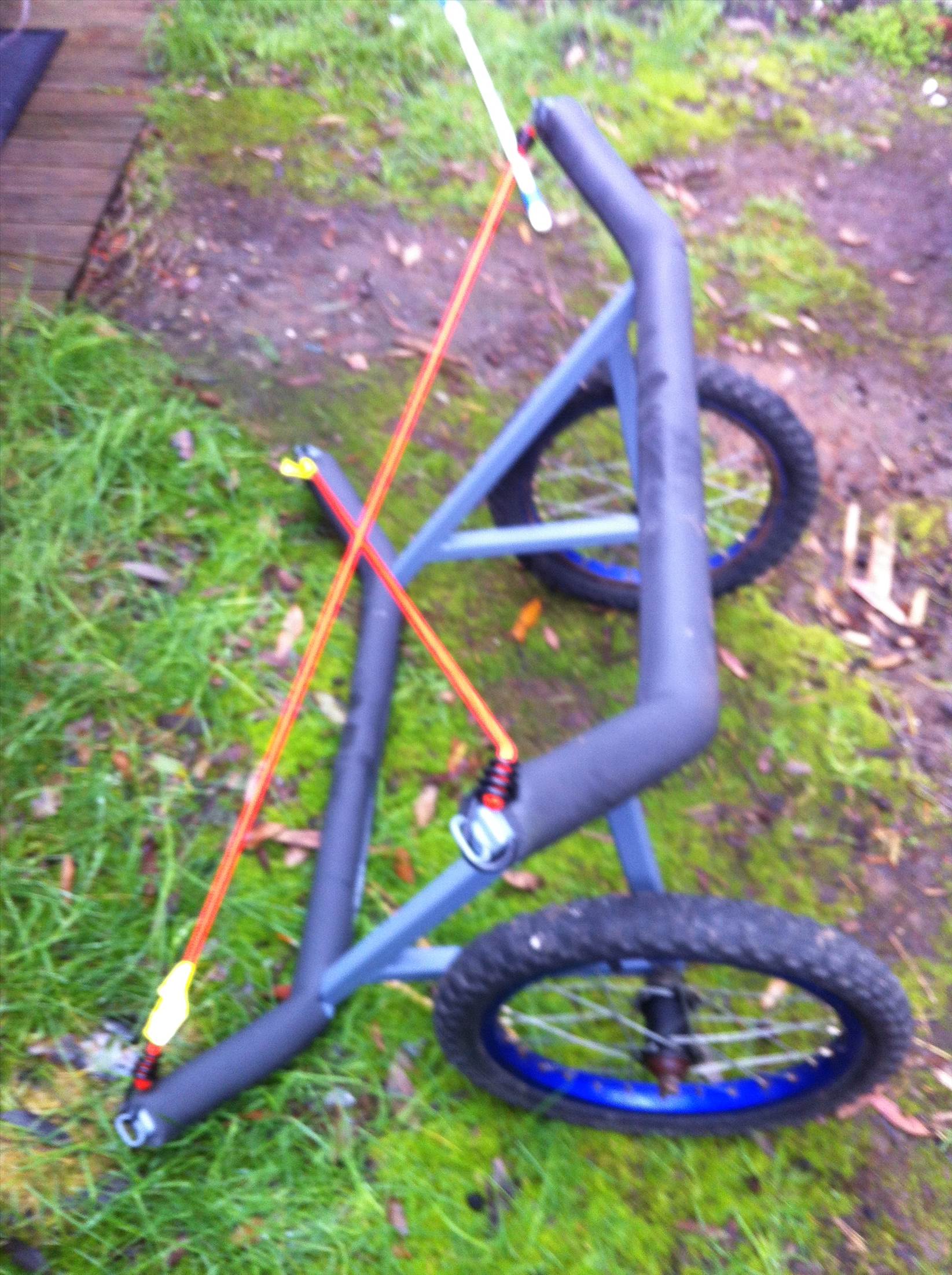 so kept the nose cone and pinched the wheels off the kids bikes -made a new improved version of the trolley- much better on rough beach tracks