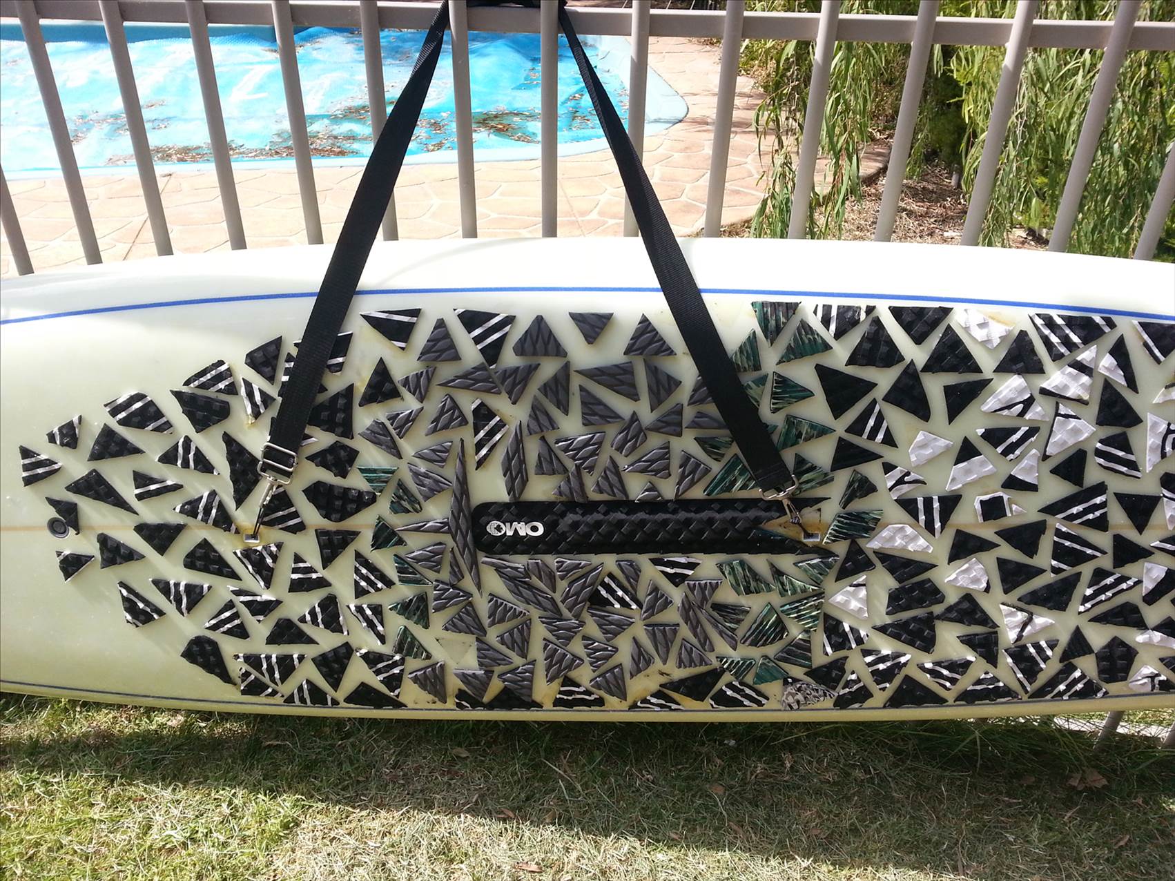 I had a similar problem carrying my SUP due to no carry handle built into my board. I bought two $5 leg rope inserts from my local surf shop, drilled two 25mm holes into deck, and then epoxied in. Now very easy and comfortable to carry using a spare board carry strap!![]()