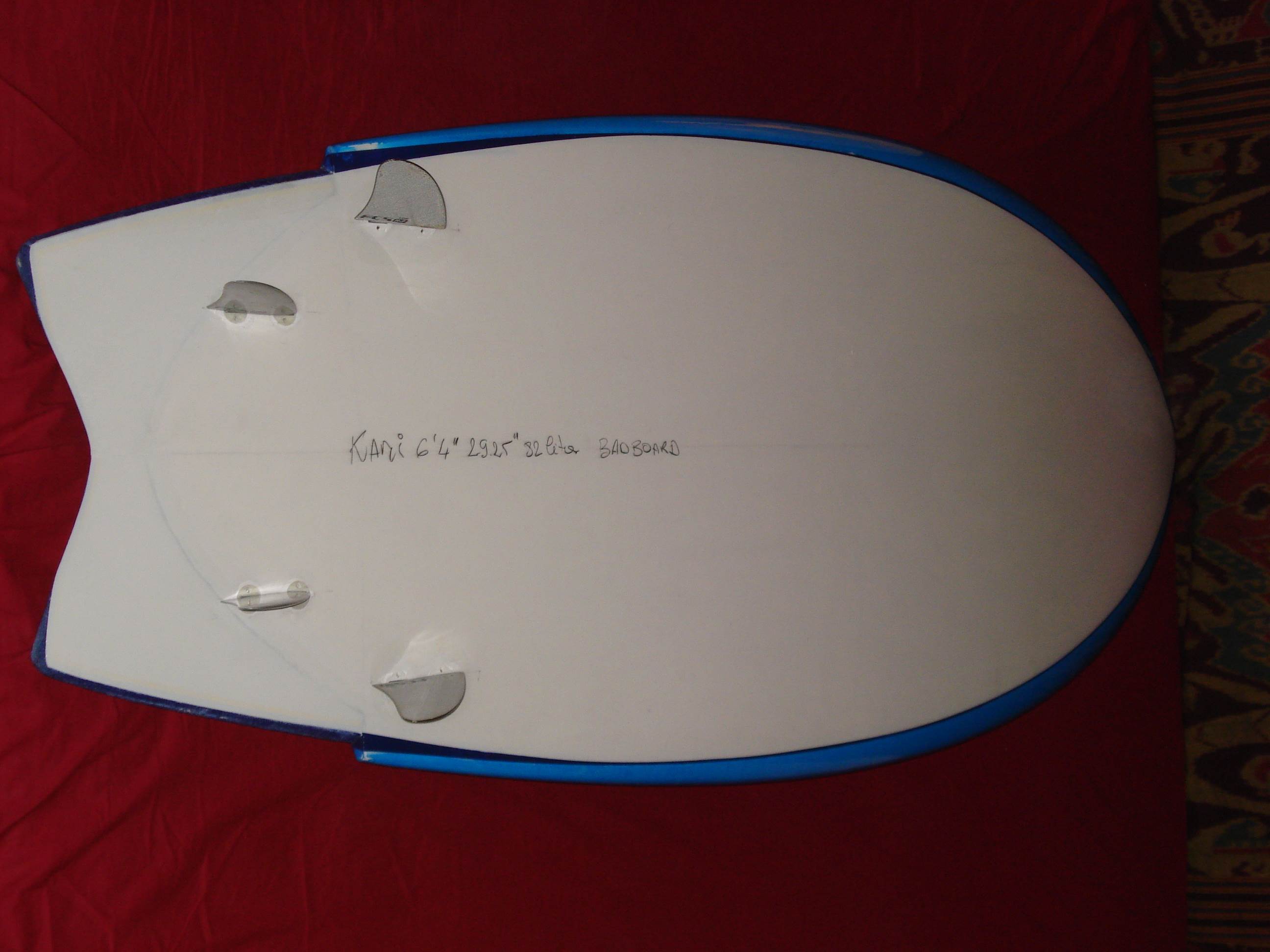 6'4" 28'75" 82 liters swalow channeled ( in maintenance)