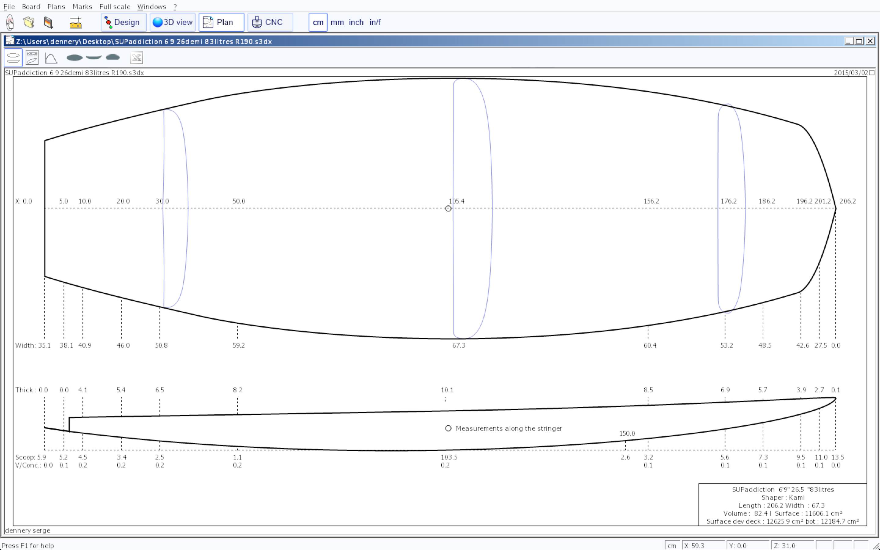 Yes, let the program works by itself, always start from one slice can be middle first as example, create others at end OFO's, then delete back center one , create middle slice again , smooth it .... get a glance on volume capacity and centered it as you want with width ( which is prime for SUP)! this is is just like shaping with live foam, it never end in dust spread down the floor near stand feet. Just send file to the trash box if you don't like.