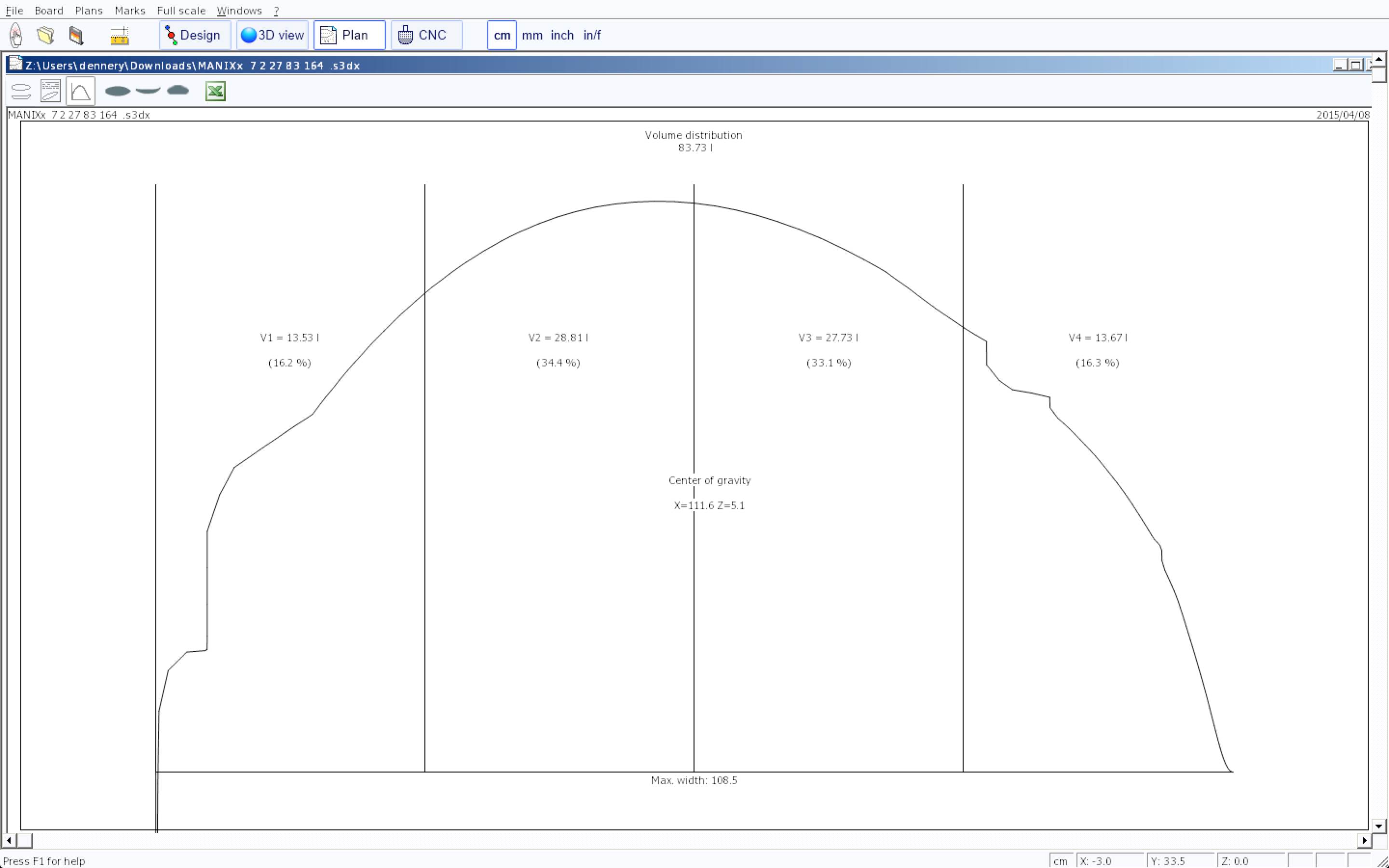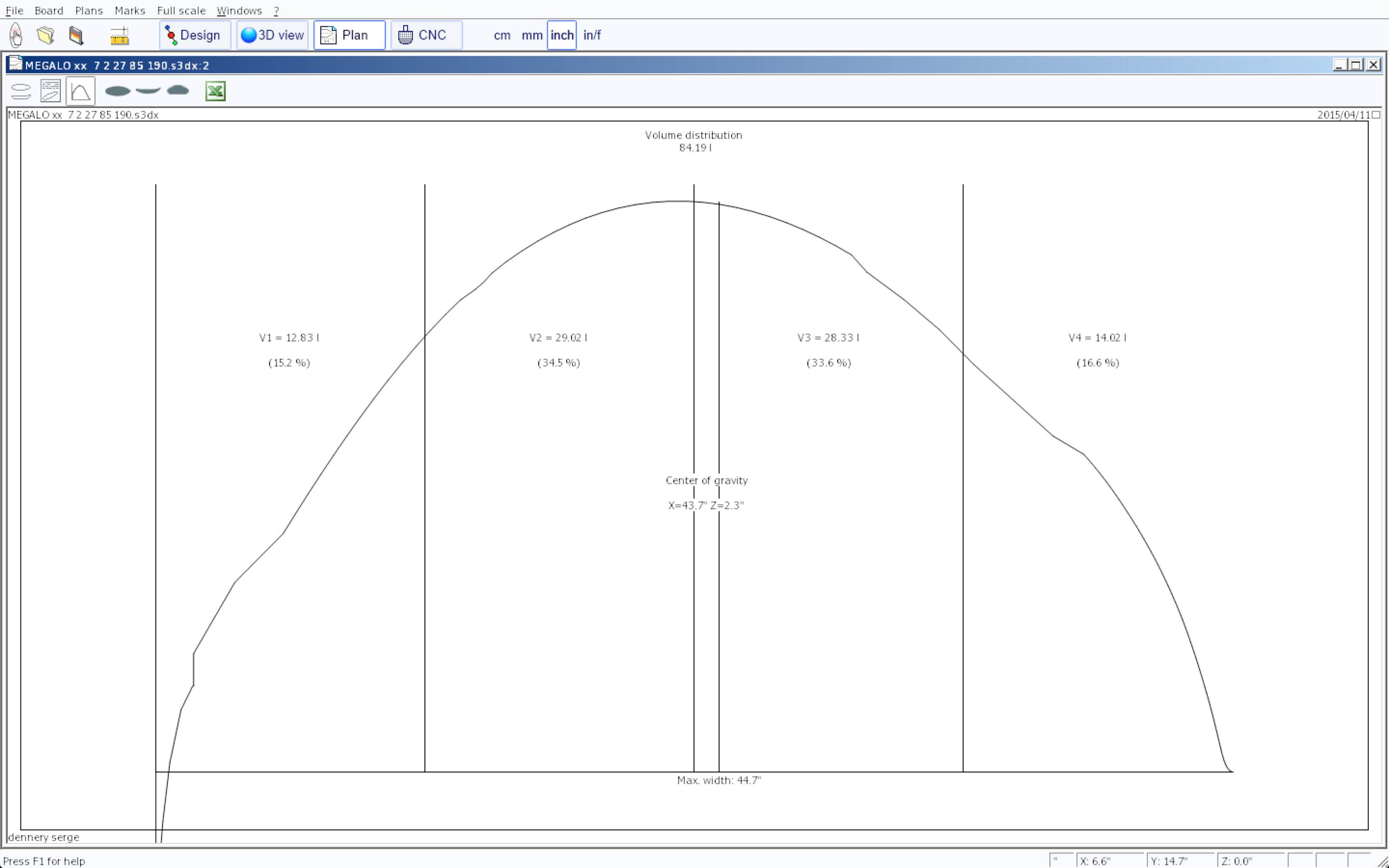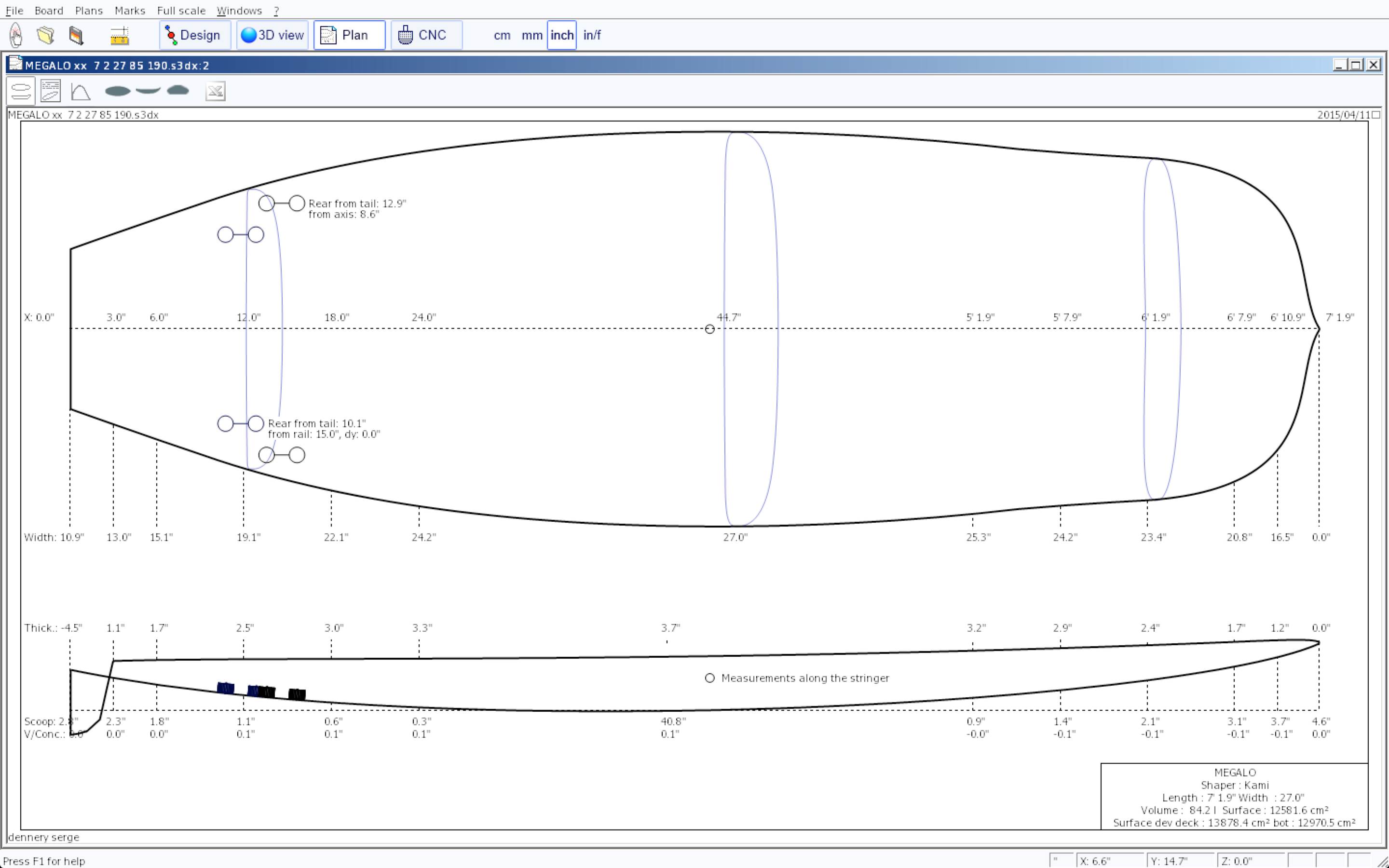 Take care watching the buoyancy diagram . Please note the equal balance of volume between tail and nose as well as center sections of the board. This is the" S" outline effect before other shaping components... Also this "S " or depress curved outline has many others reasons i cant explain here by now.