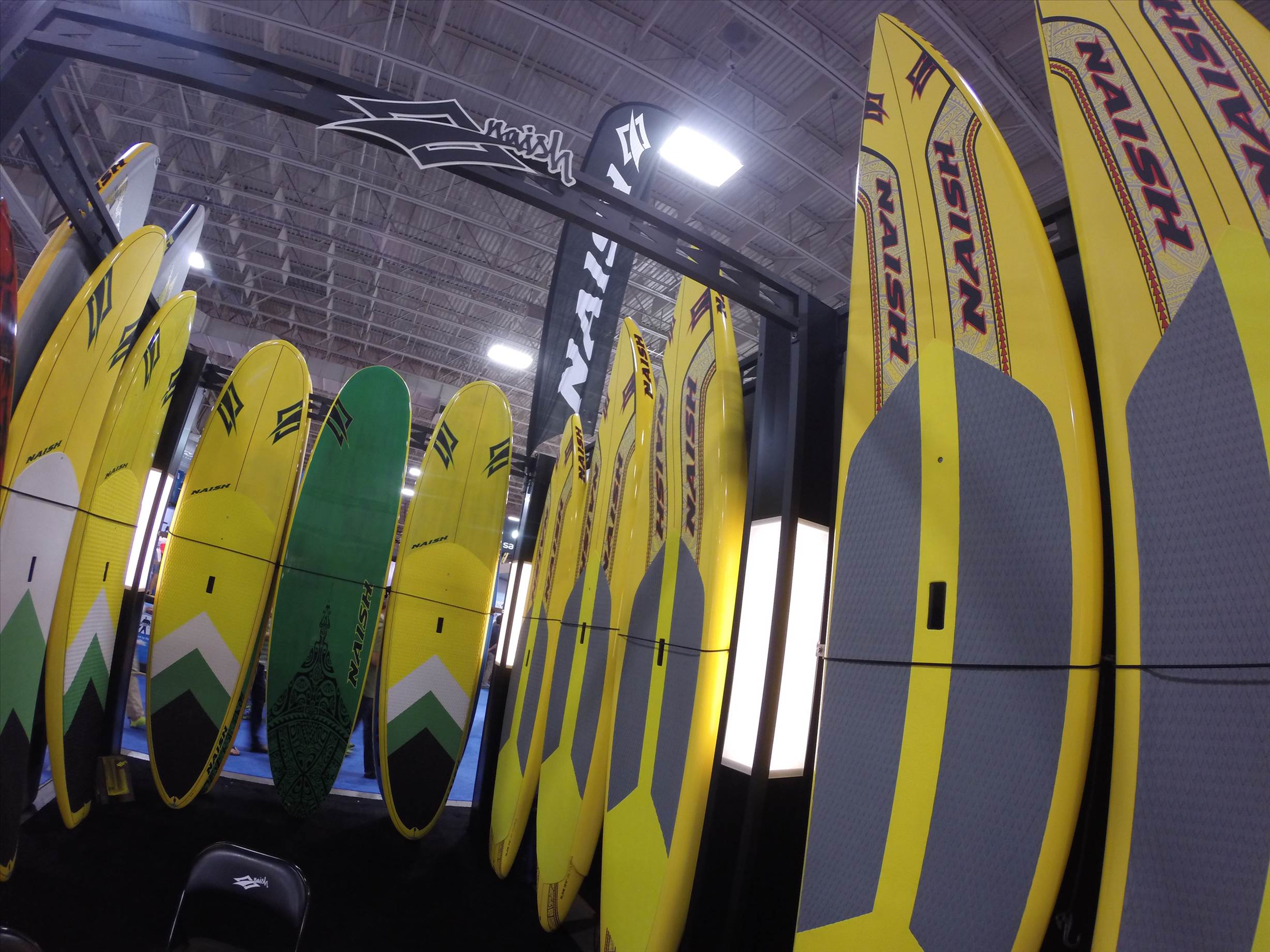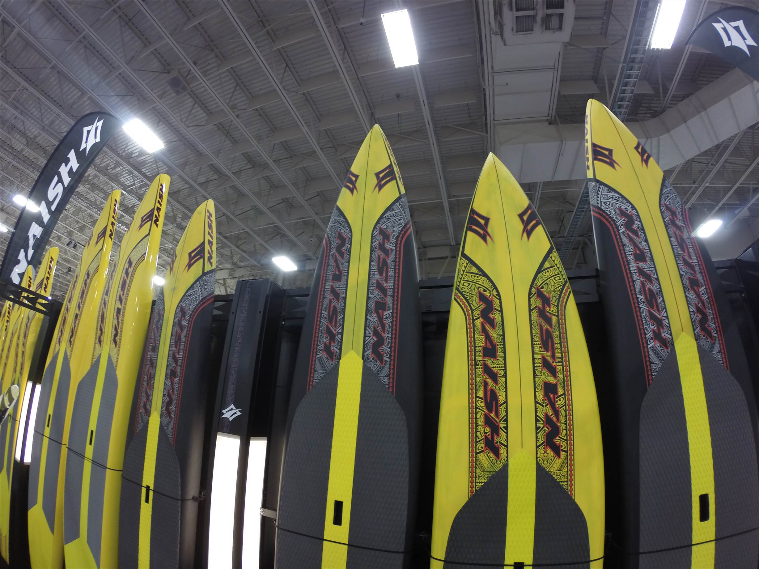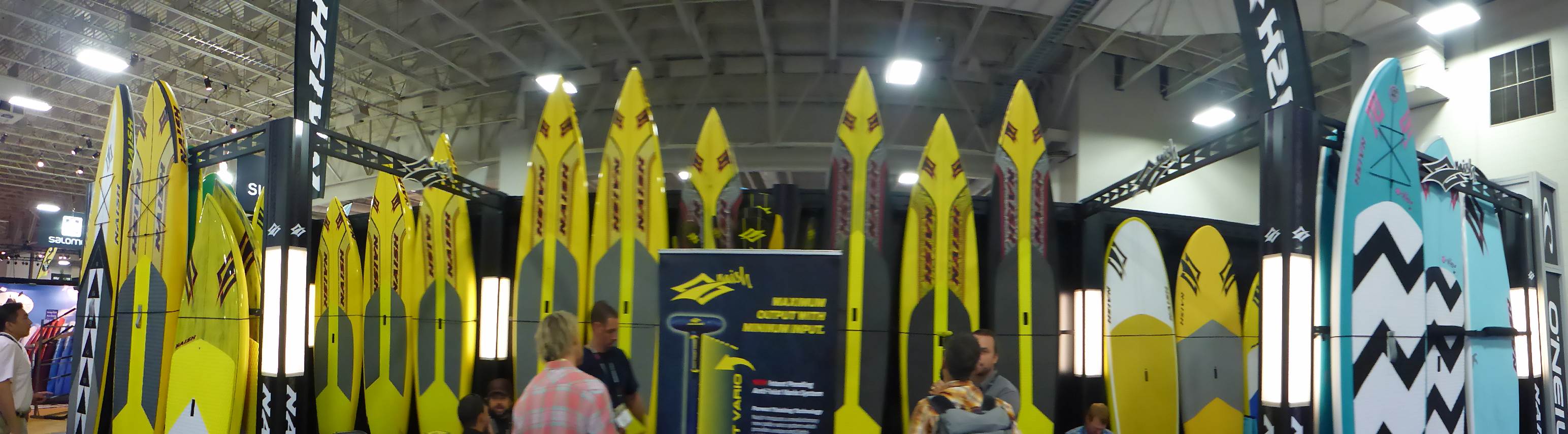 Naish stand at Outdoor Retailer show. Frothing like a kid in a candy store!!