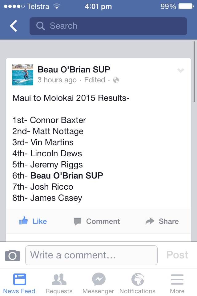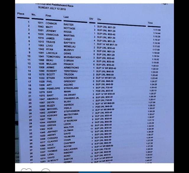 Poi bowl paddle board race 16km held there today was a great start for the Aussies if you look at the placings below..