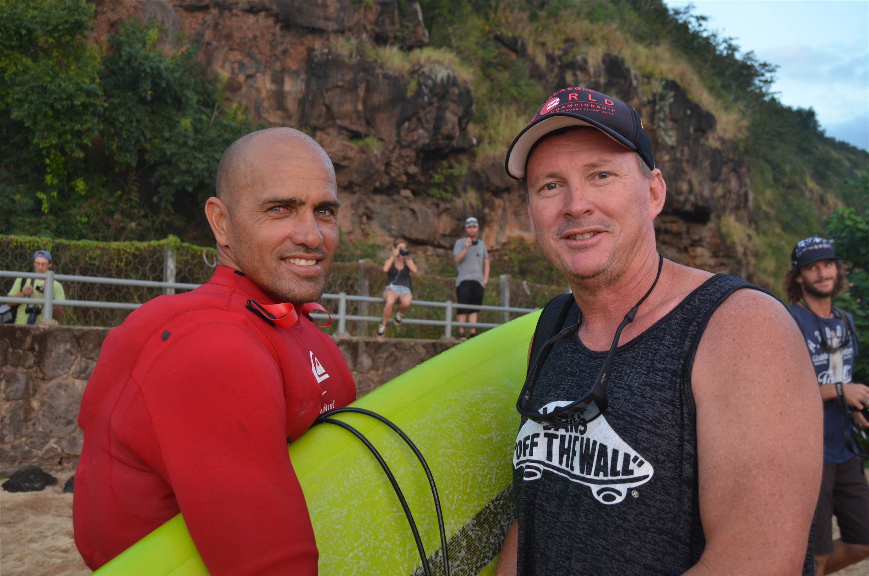 Kelly Slater was out at Waimea bay getting a few warm ups for the Eddie Ahku