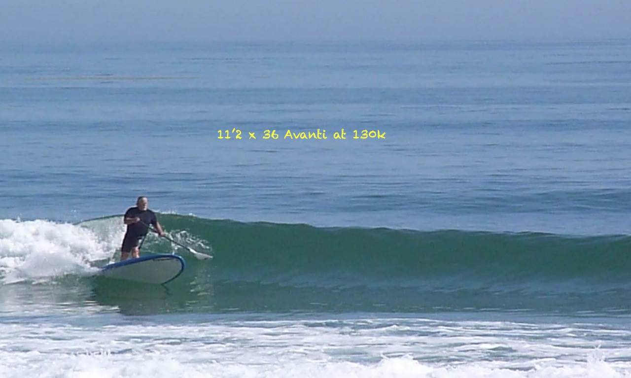 Avanti when I was 130 k.... 1st SUP...fantastic board, super stable, surfed amazing for such a tanker. Noserides well. Hurts a LOT when it hits you. Paddles flat-water fine.