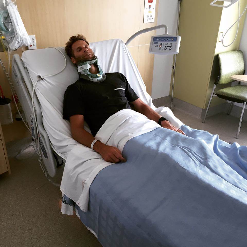 This morning I surfer pumping Burleigh Point and went head first into the shallow sandbank breaking my neck my C 4 & C 5. I'm extremely lucky and have feeling in my arms and legs and movement and mobility.
