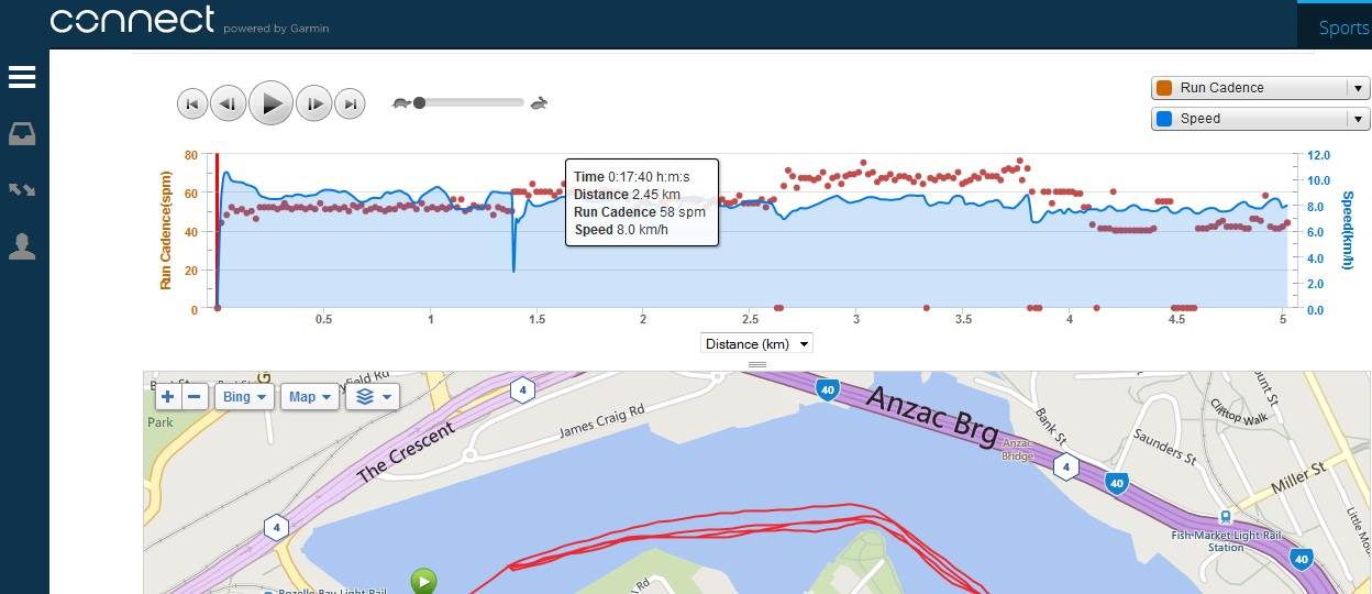 See above pic of Cadence and speed graphs. (accelerometer in watch records SPM stokes or steps per minute- there's also accelerometer on in heart-rate monitor (but I find the watch accelerometer records better). Had on wrist and on PFD on chest and found better readings on wrist.