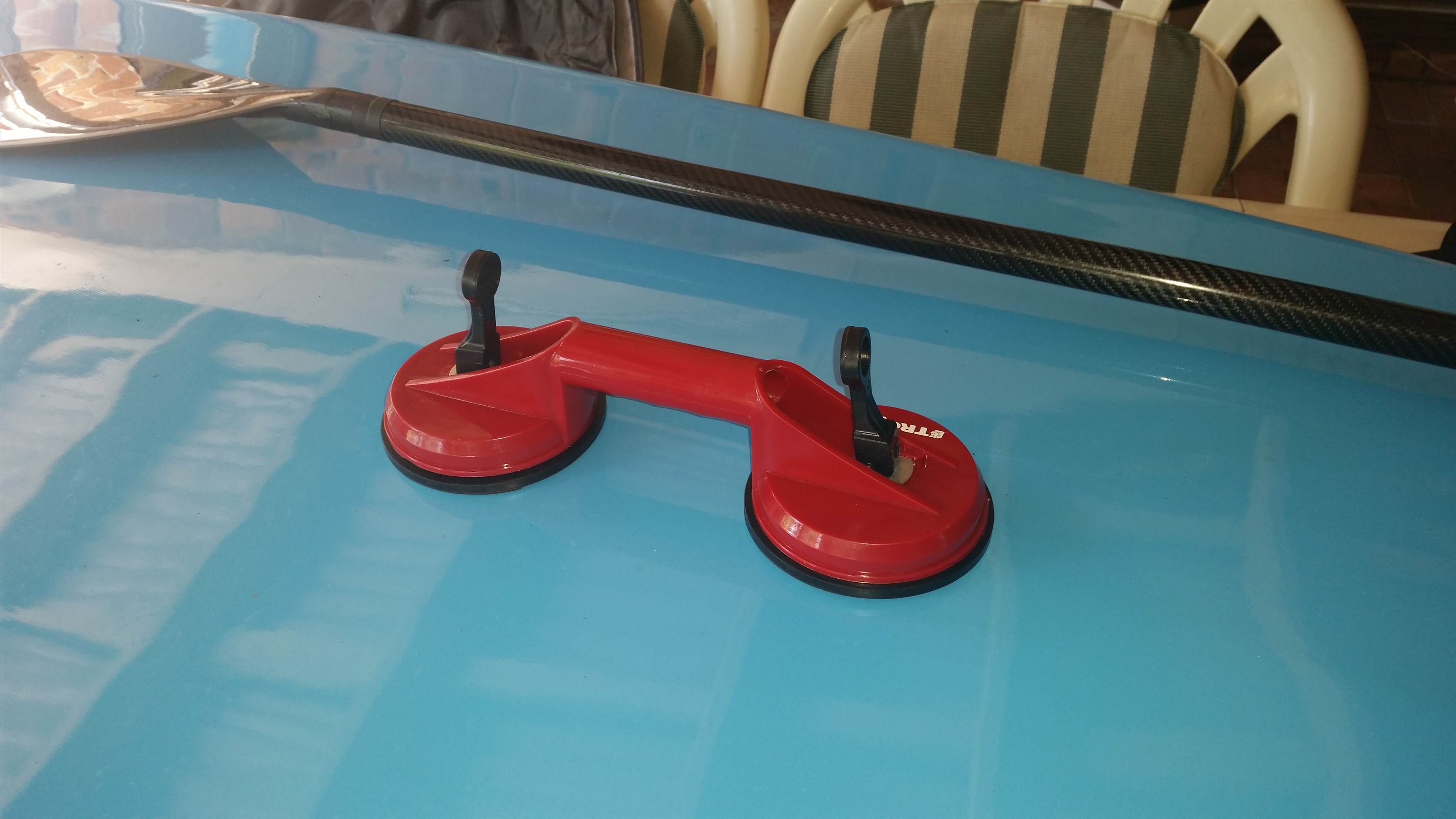 That's a genius idea with the suction cup! Perhaps even you could consider one of those small blocks of steps if they fit in the boot of the car. At least that way you can get up to roof level? Just an idea :)