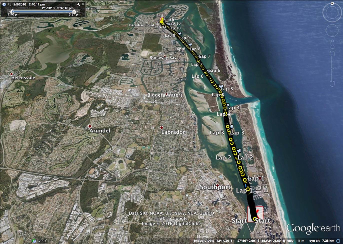 There was a lot of current moving around. My fastest k was 4:33 and got up to 18.7km/h, it took me 88 minutes for the 17.4km run (slow)