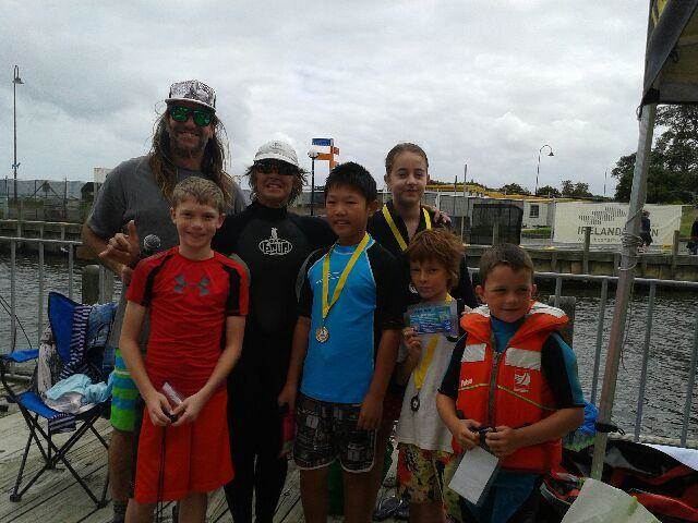 And here's why we do what we do - some frothing kids - egged on by a wounded Doggie - who mastered the Kananook Creek in the Kid's SUP event - Roy, Jess, Taj, Jackson and Lucas - you kids rock!