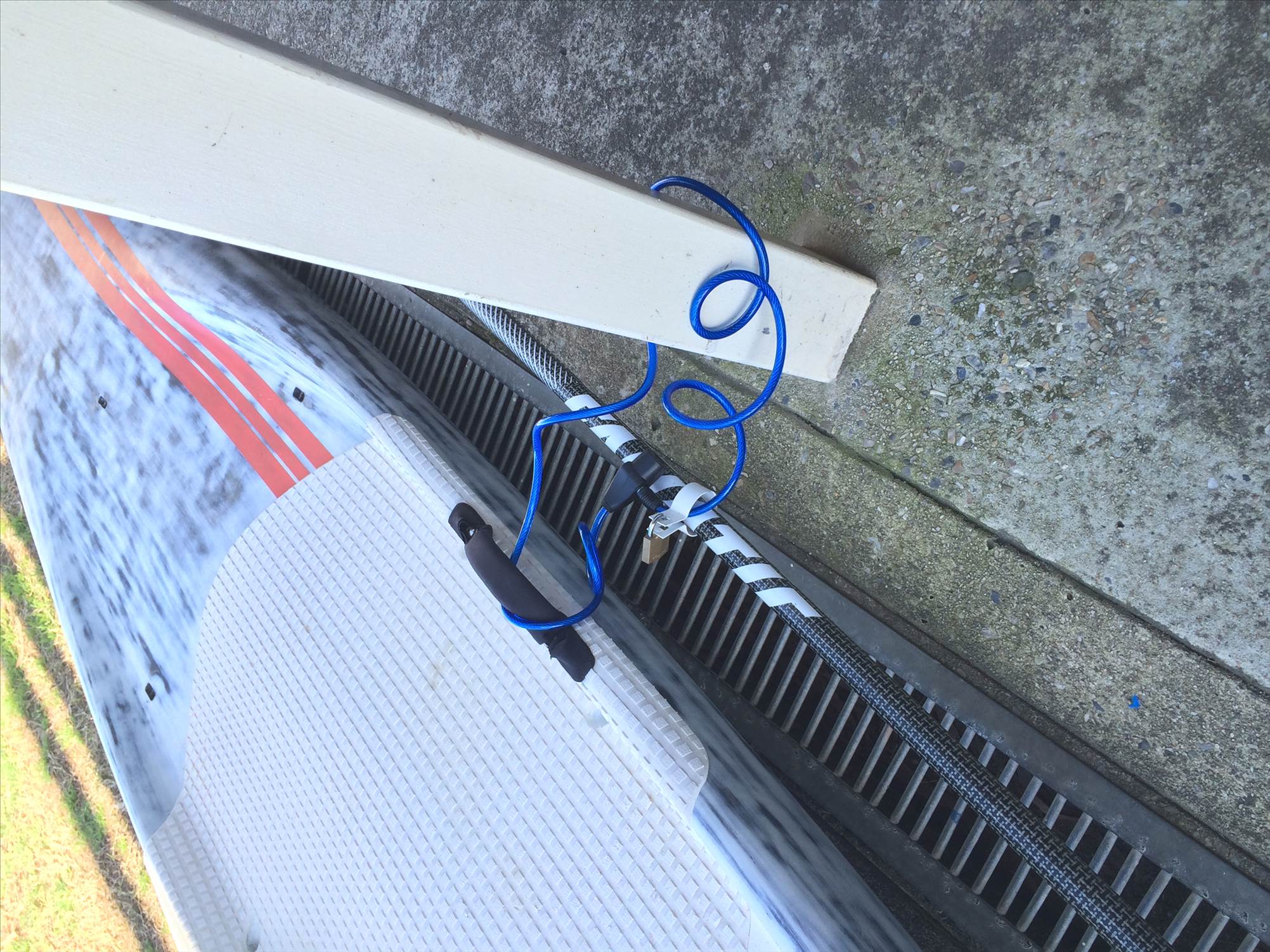 Bunnings came to the rescue with a steal clamp I found in the plumbing section that opens up just enough to get the paddle shaft into lock it up and feed bike lock through board straps and around structure. So far so good. Hopefully no one carries bolt cutters around with them regularly