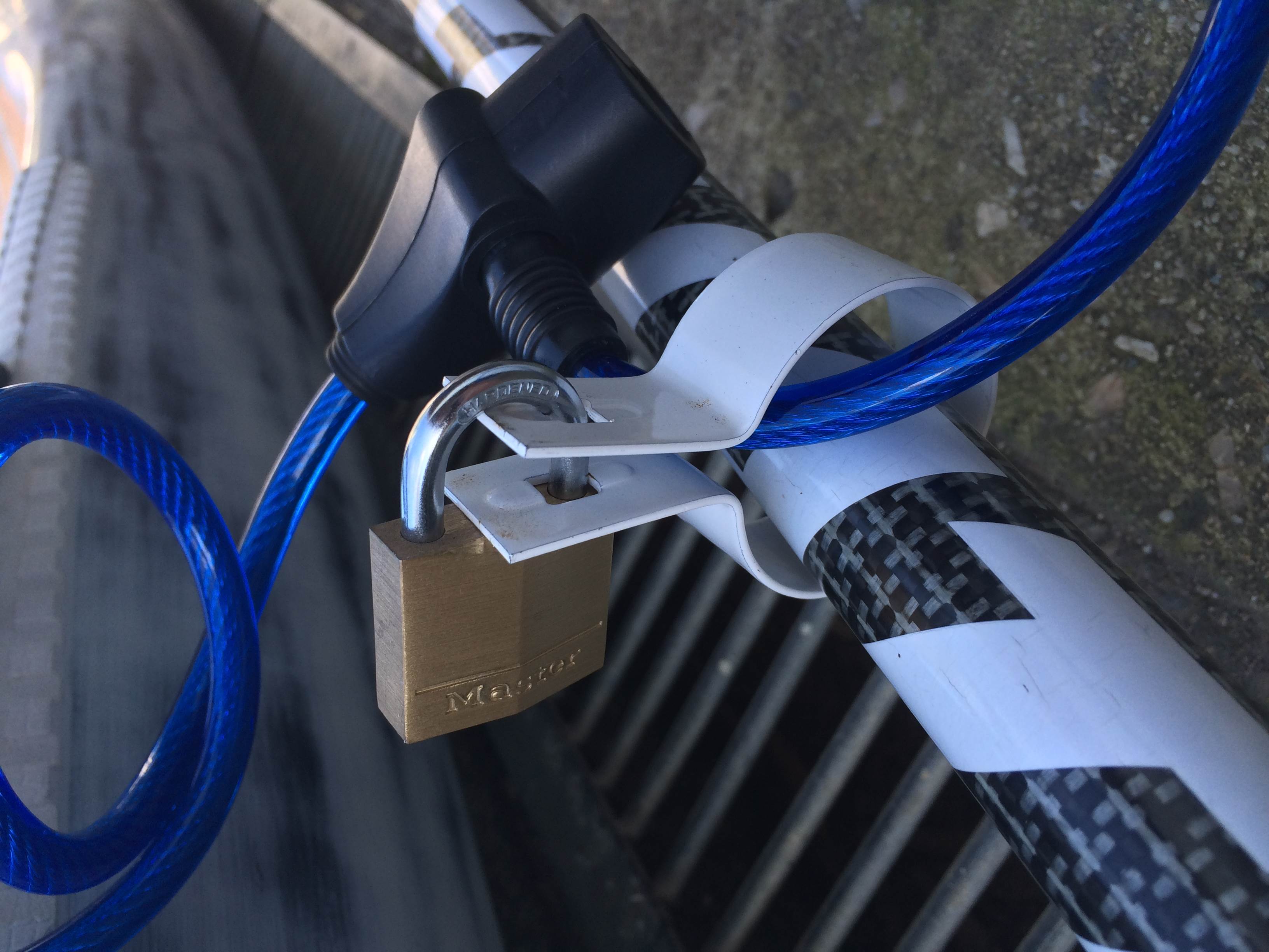 I know it keeps the honest thives honest but don't tempt them. By just unscrewing the two Phillips head screws they could have your board, and that cable won't hold up to any force.. You know these sneaky bastards will even do it in broad daylight..
