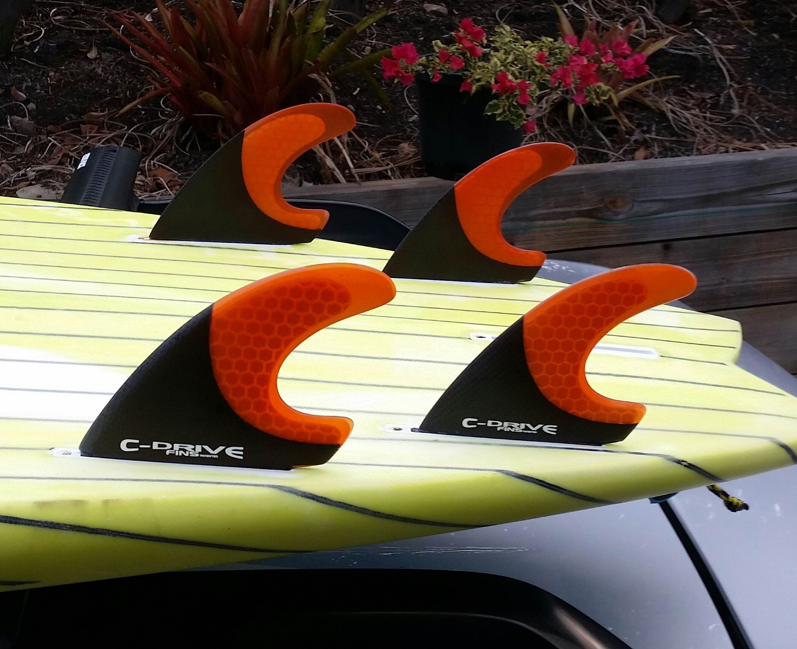 or soften the quad effect by putting smaller rear fins, symmetrically foiled. 2 "trailer" fins are nice for this. Or increase the front fins, or use ones with more grip, like C-Drives.