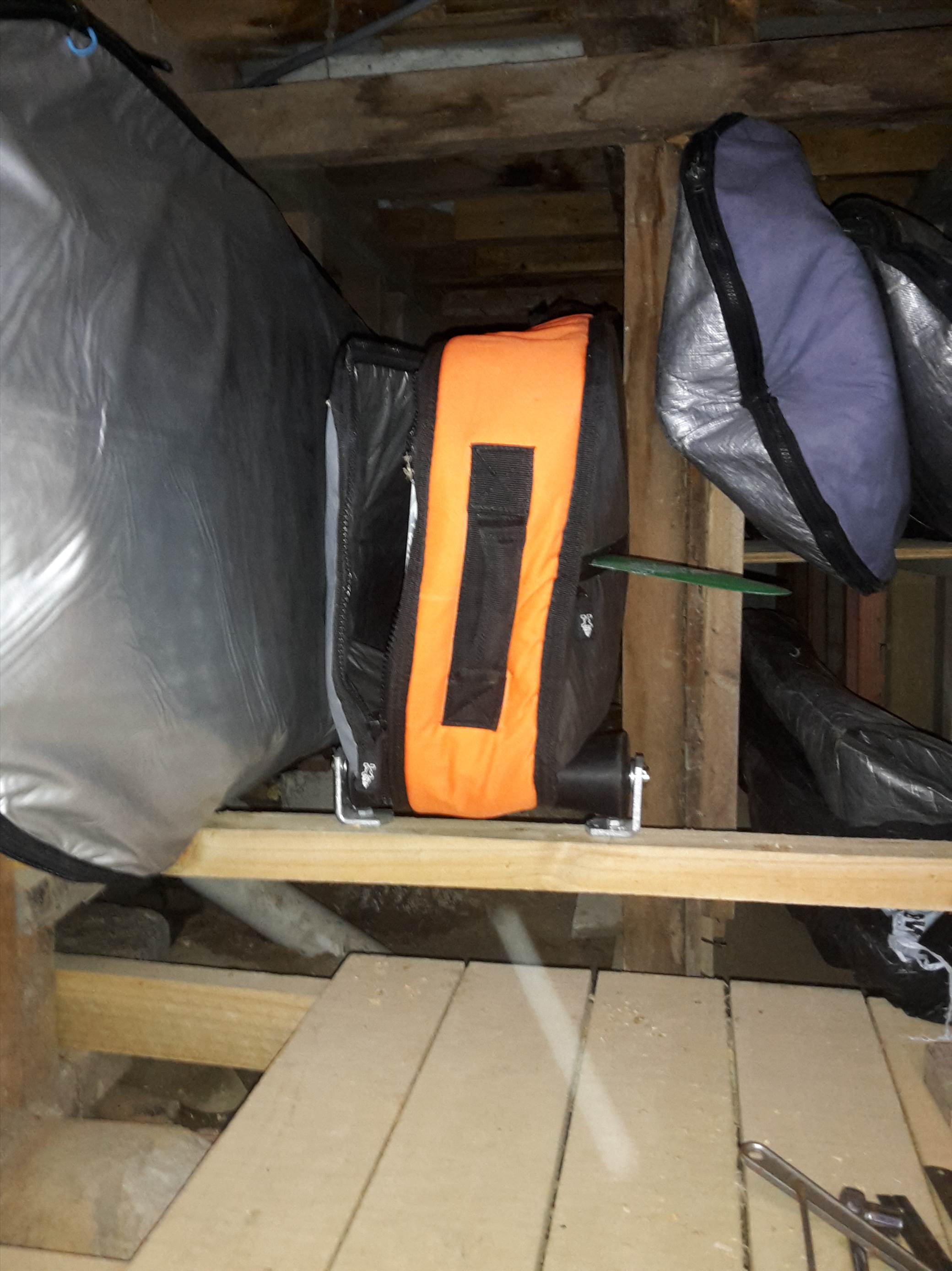I like my boards up and out of the way. 50mm seat belt webbing from Clark rubber, bit of water pipe and some pool noodle, easy.