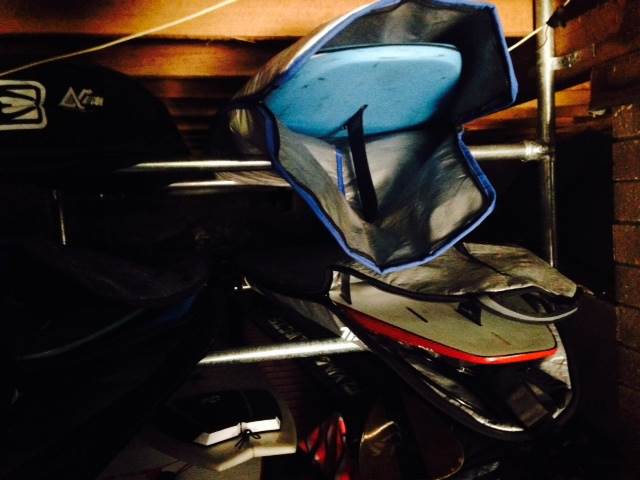 I store my boards out of the covers and deck down, keeps them dried out and ensures the planing surface is in perfect condition.