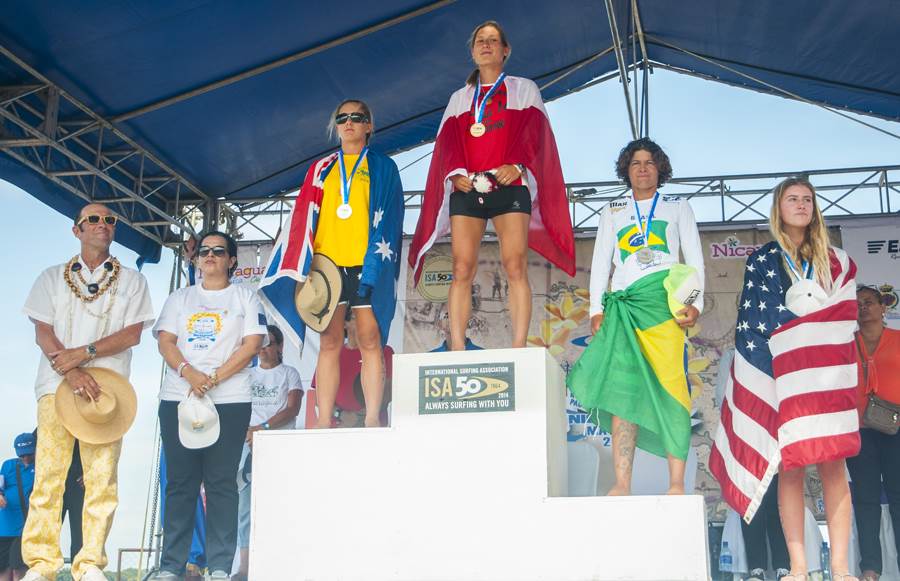 This year at the ISA she got 2 gold 1 silver and 1 bronze. She is the 1st ever athlete men or women to collect an individual medal in each of the 3 disciplines the same year :Surfing, marathon , technical race.