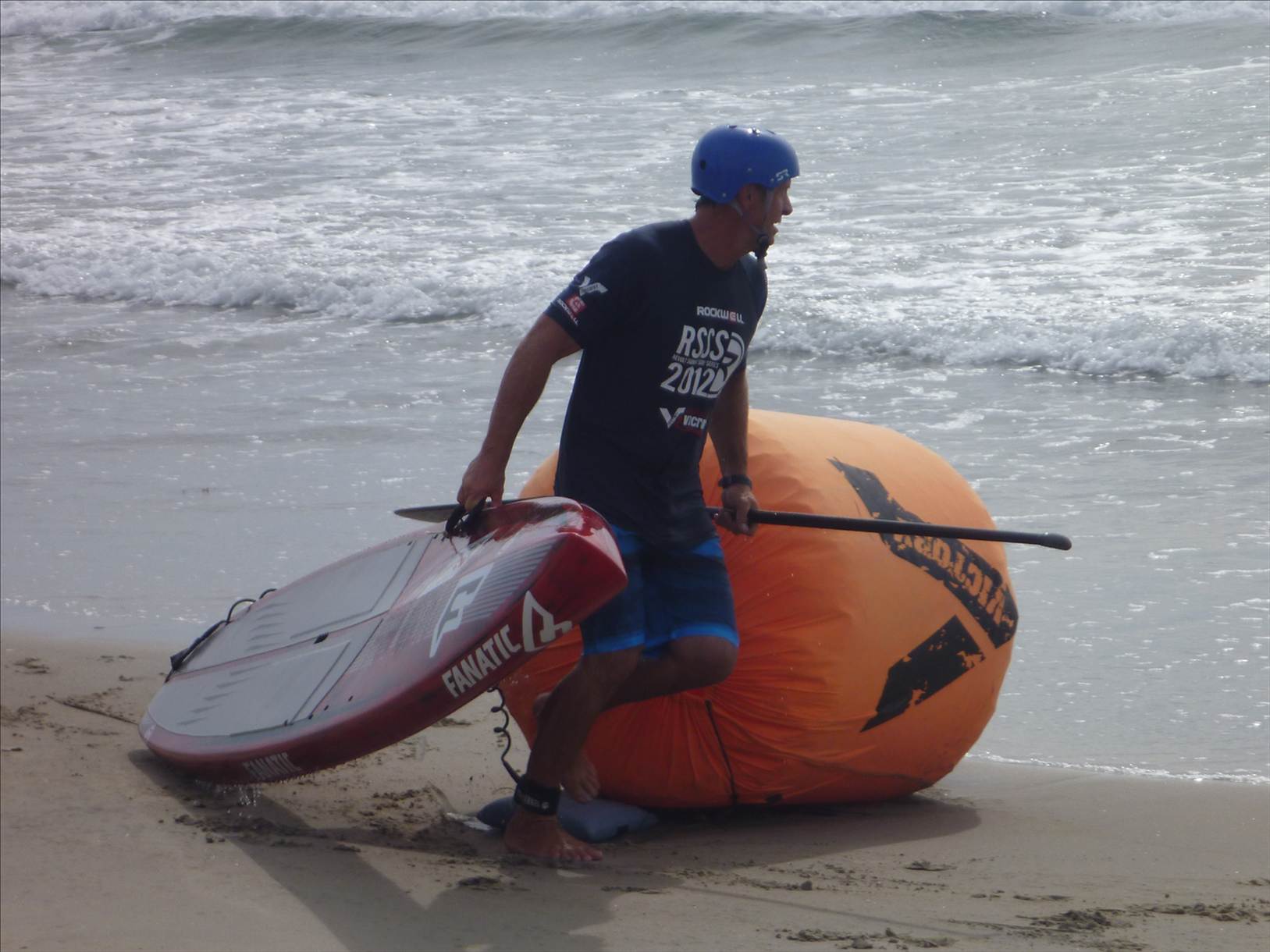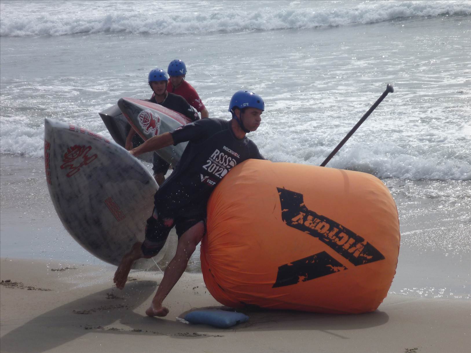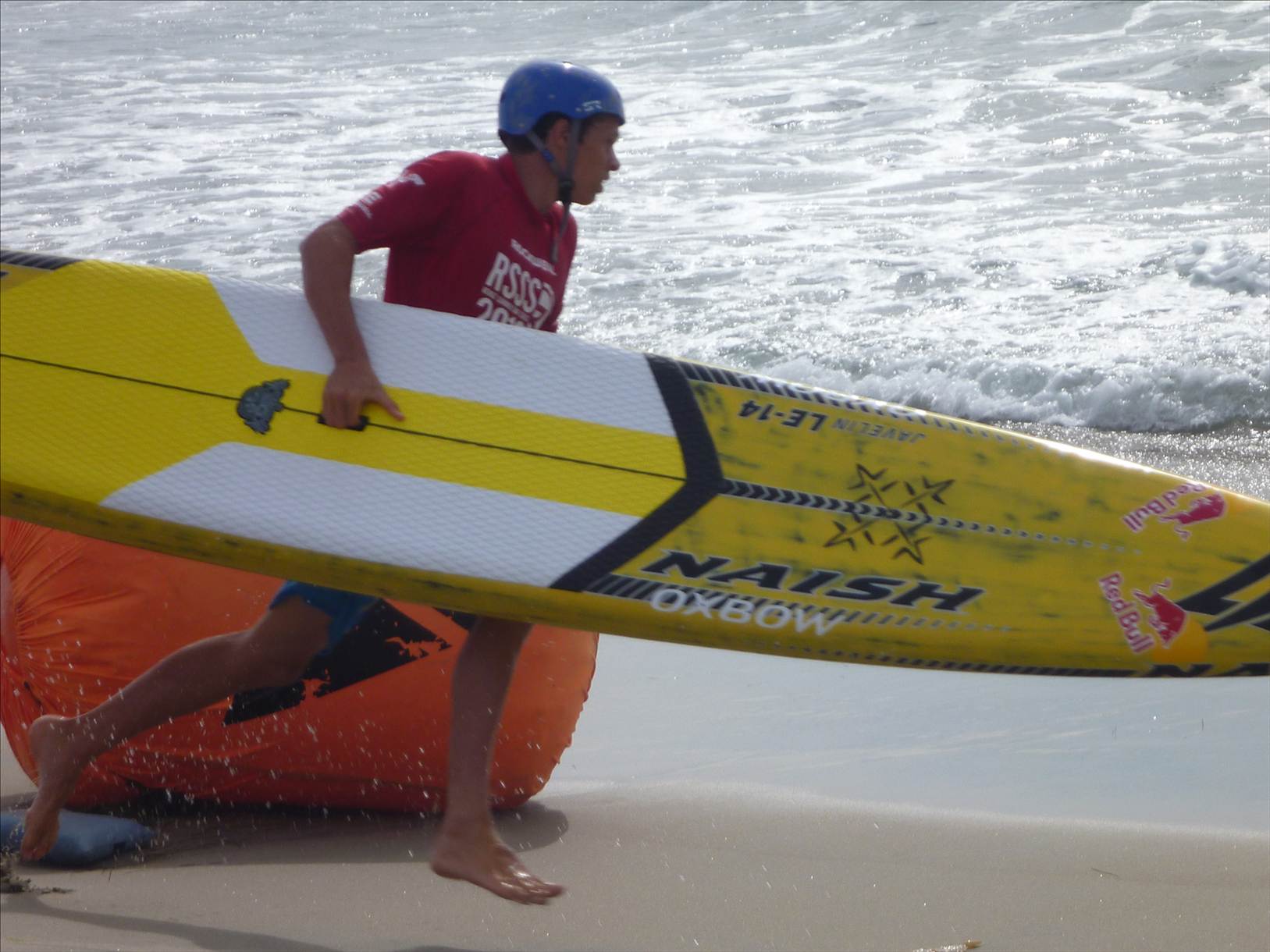 The final saw Beau also opt for a 12'6, with Jake & Dan Gavere the only 2 remaining on 14's. Jake took a lead early in the heat and was unchallenged for 1st from start to finish (that 14'x23" is sooo fast). Beau opened up a clear gap to the rest of the field in the 2nd leg to take 2nd overall and 1st 12'6 across the line. I think the local guy came in 3rd then it was a sprint and dive to the finish line for 4th with Zane just edging out Anthony.