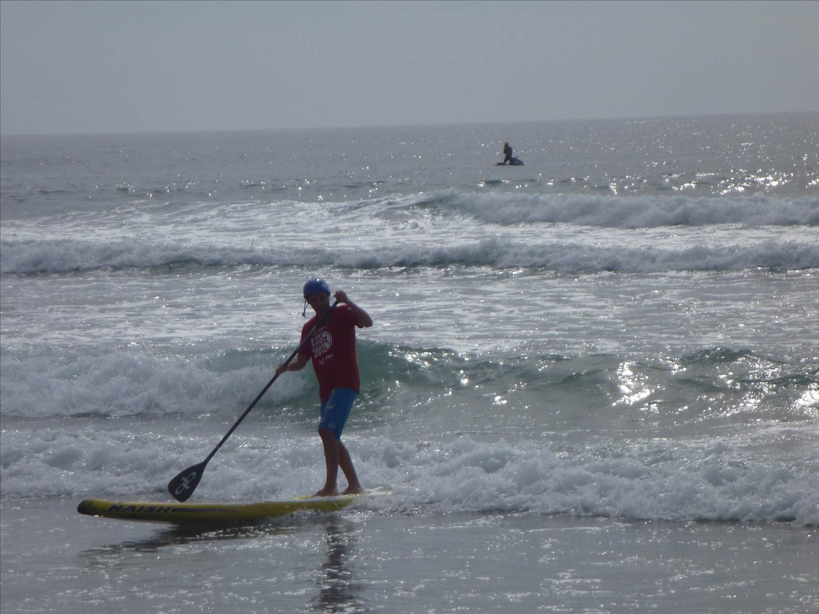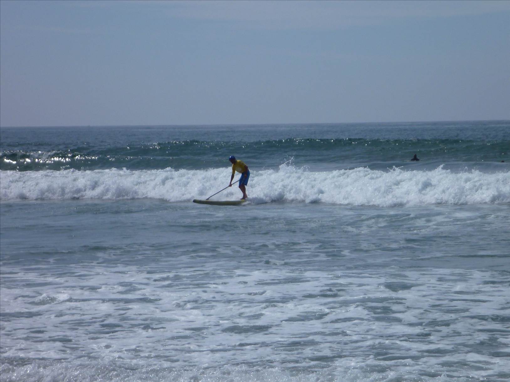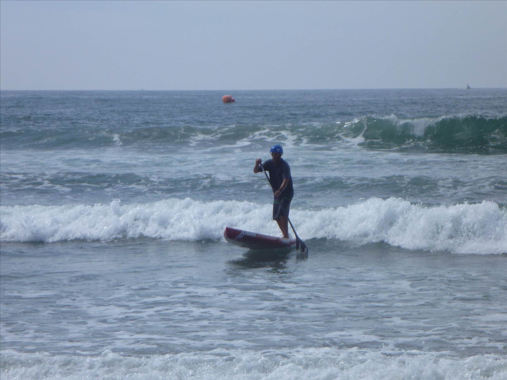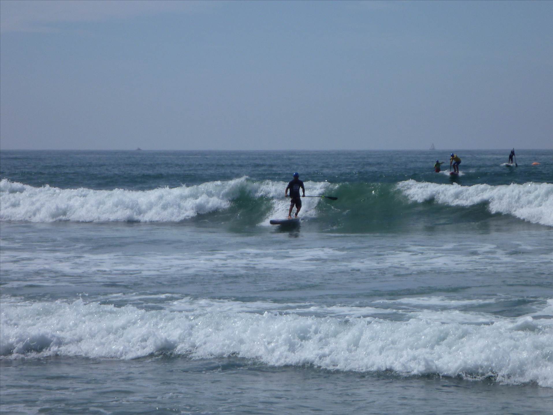 The format was awesome, basically a single 'M' shaped course, paddle out to the first outside can, back in and run around a buoy on the waters edge, out to the second can and in to the finish with a short 10m run up the beach. With 2ft surf (& the occasional 3ft set) it made for exciting racing and if you got worked once, then it was pretty hard to catch up any ground lost on the short course.