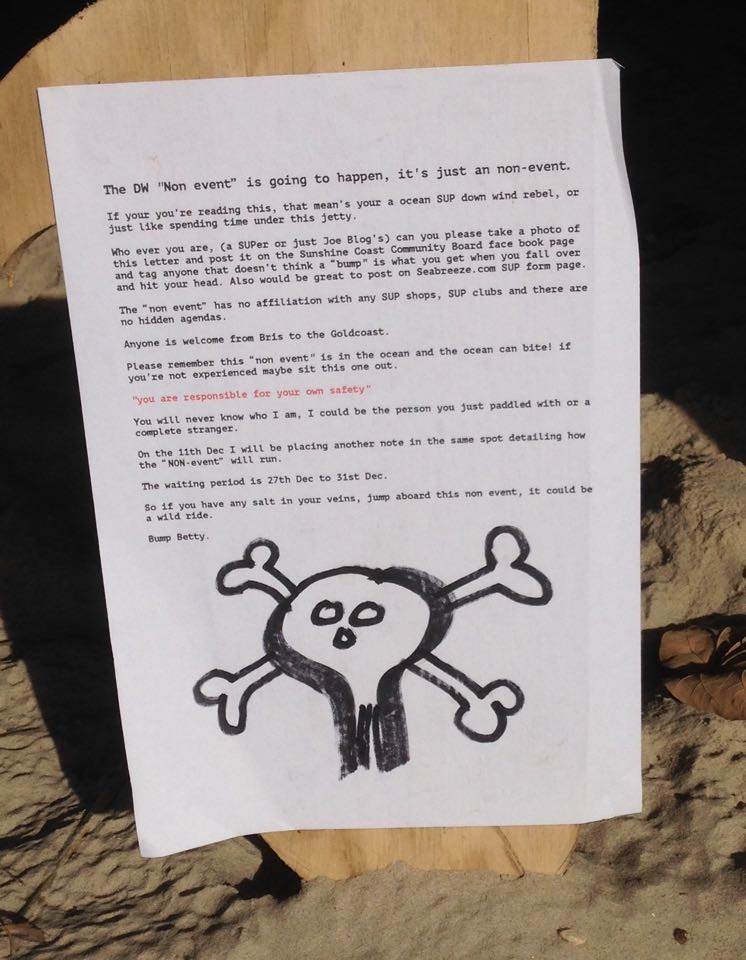 Meet at the Mooloolaba Spit BBQ area opposite the yacht club around 9am, look for the non event skull and cross bones.