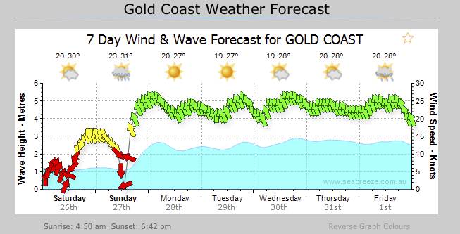 The forecast is 20-30knots of SSE wind with a good 6 foot of SSE sea running.