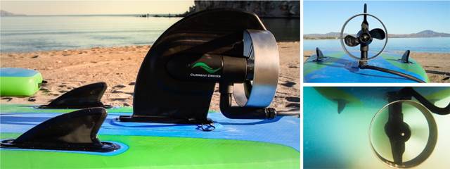Seattle based company, Current Drives LLC, has created the first universal electric motor kit for standup paddleboards, longboards, and kayaks, called the ElectraFin, which can transform a normal board or kayak into an electric powered one, and is now available on their Indiegogo page for purchase.