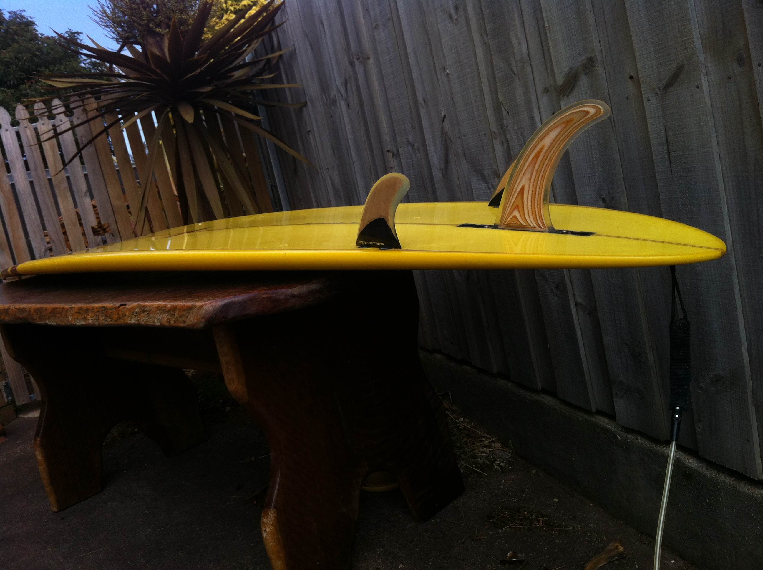Ron Goddard - Goddards surfboards also supplies some nice hand made fins made by his mate at Byron , here is a picture of mine on my goddard nimbus latter , the centre fin is the handmade