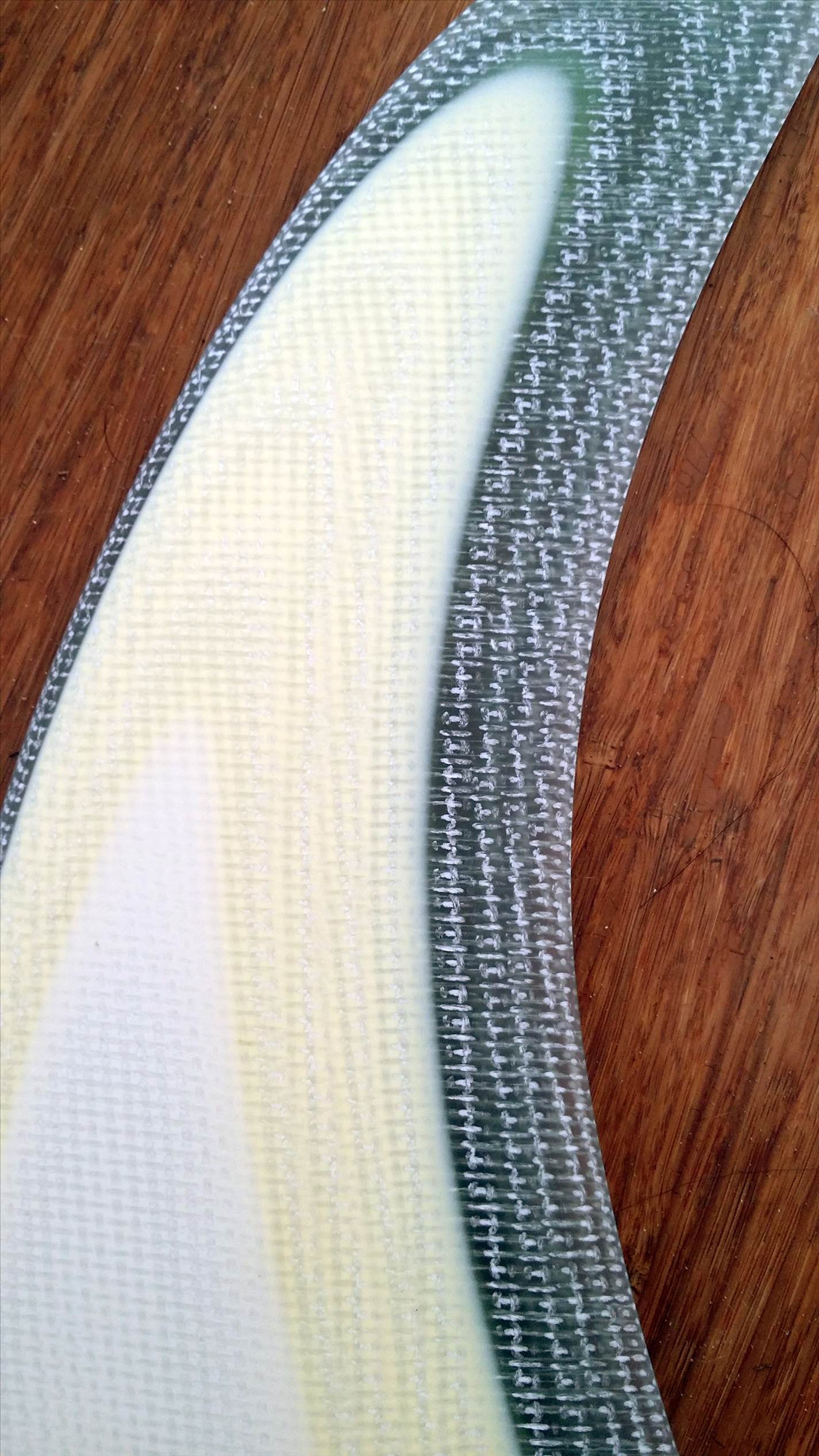 lovely fins - one of the boys here has a 10 inch with loads of rake and flex in the tip - done in the 3 shade volan - it is a sight to behold ! He rides it on a 7'6" single and it seems to handle anything.