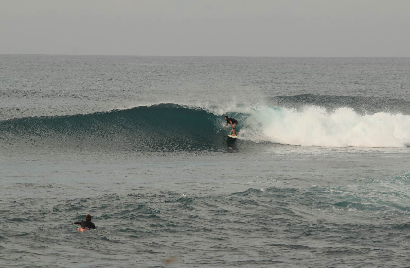 First surf since I got here - then again it's the first time I have had a board that would sort of go in wind slop. But of fun. Best waves I have had in a week and a half.