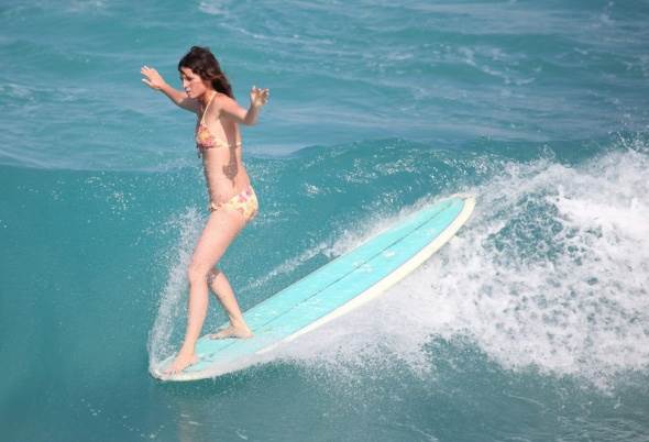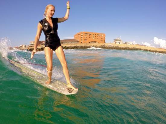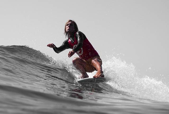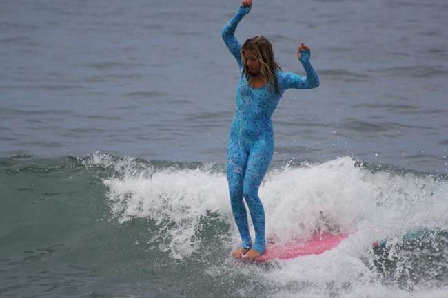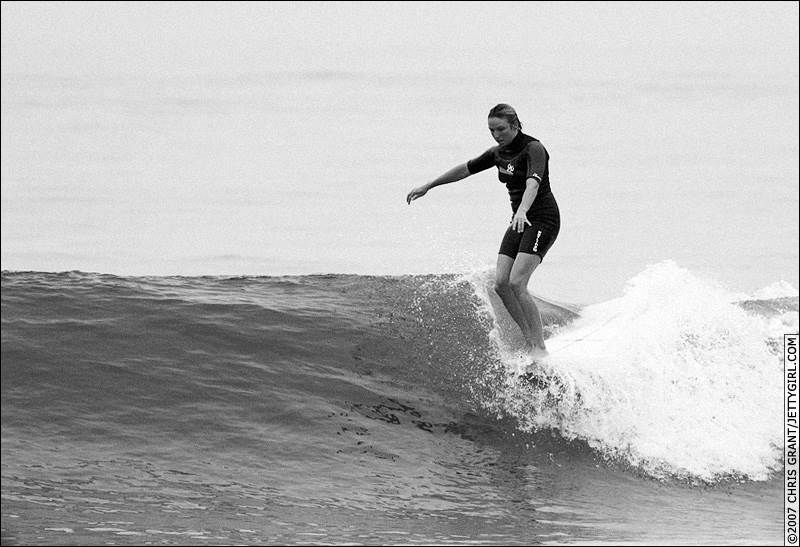 She always looks in control. Seen her surf a few times, great to watch. She gets on the nose and it looks like the board has a counterbalance weight on the back.![]()
