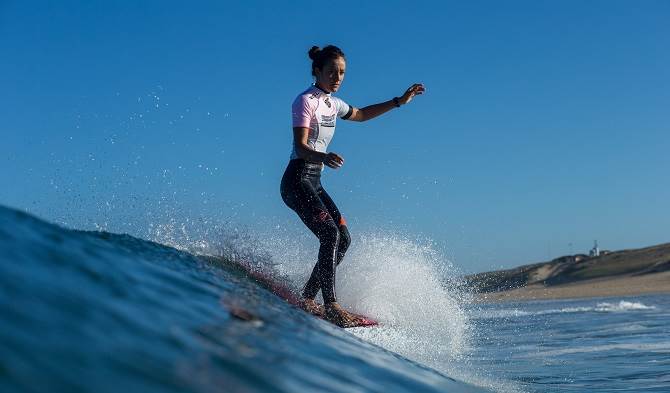 But she is riding a XXXX longboard