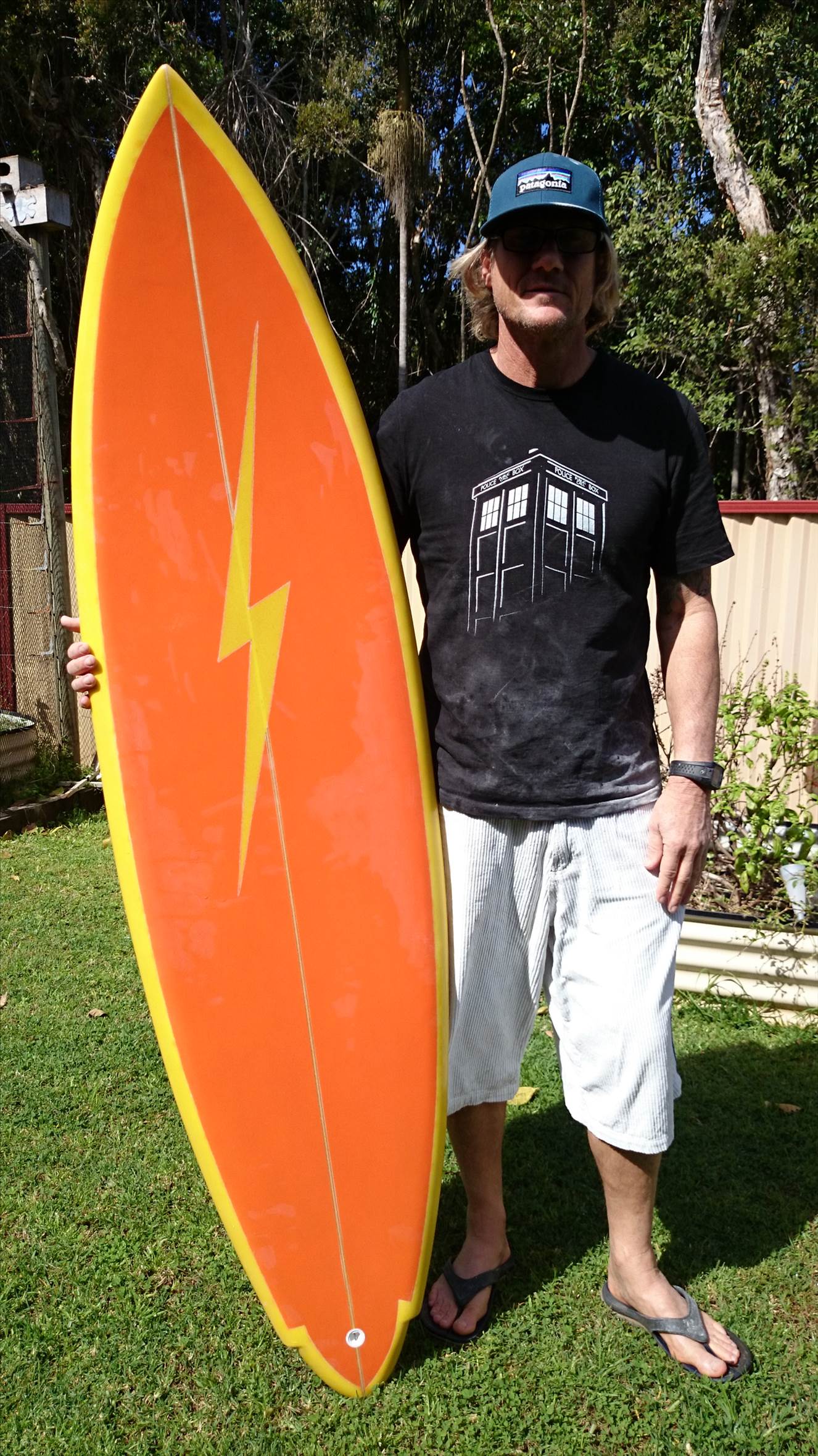 I have been restoring this one - can not wait to get her wet shortly. I also have a single fin in production as we speak. Will post some pics when I get a chance. She is a 7'2" old school shape but with modern rails and bottom - not too dissimilar to a Mct Tracker.