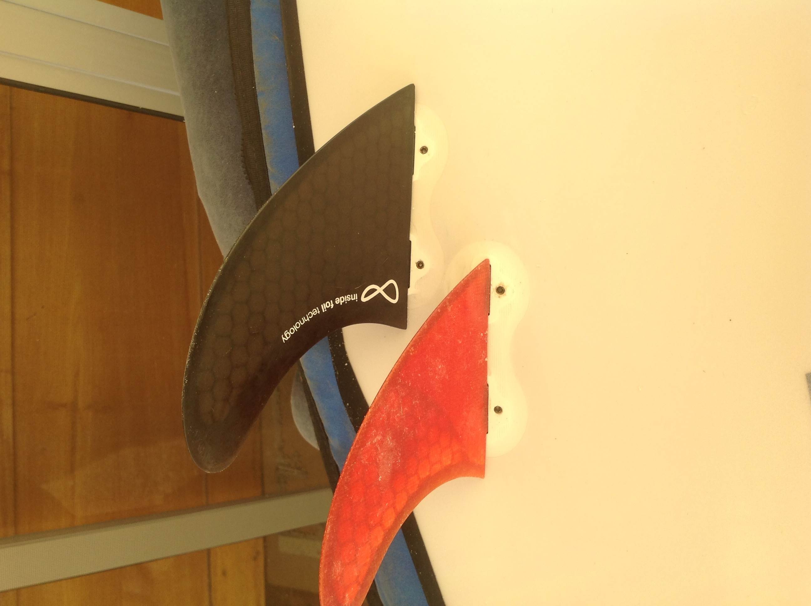 I meant to say before I can't comment on Futures as I've never used them. This is what I meant by the tight cluster. If you want more drive swap em round and put the bigger fin in the rear.