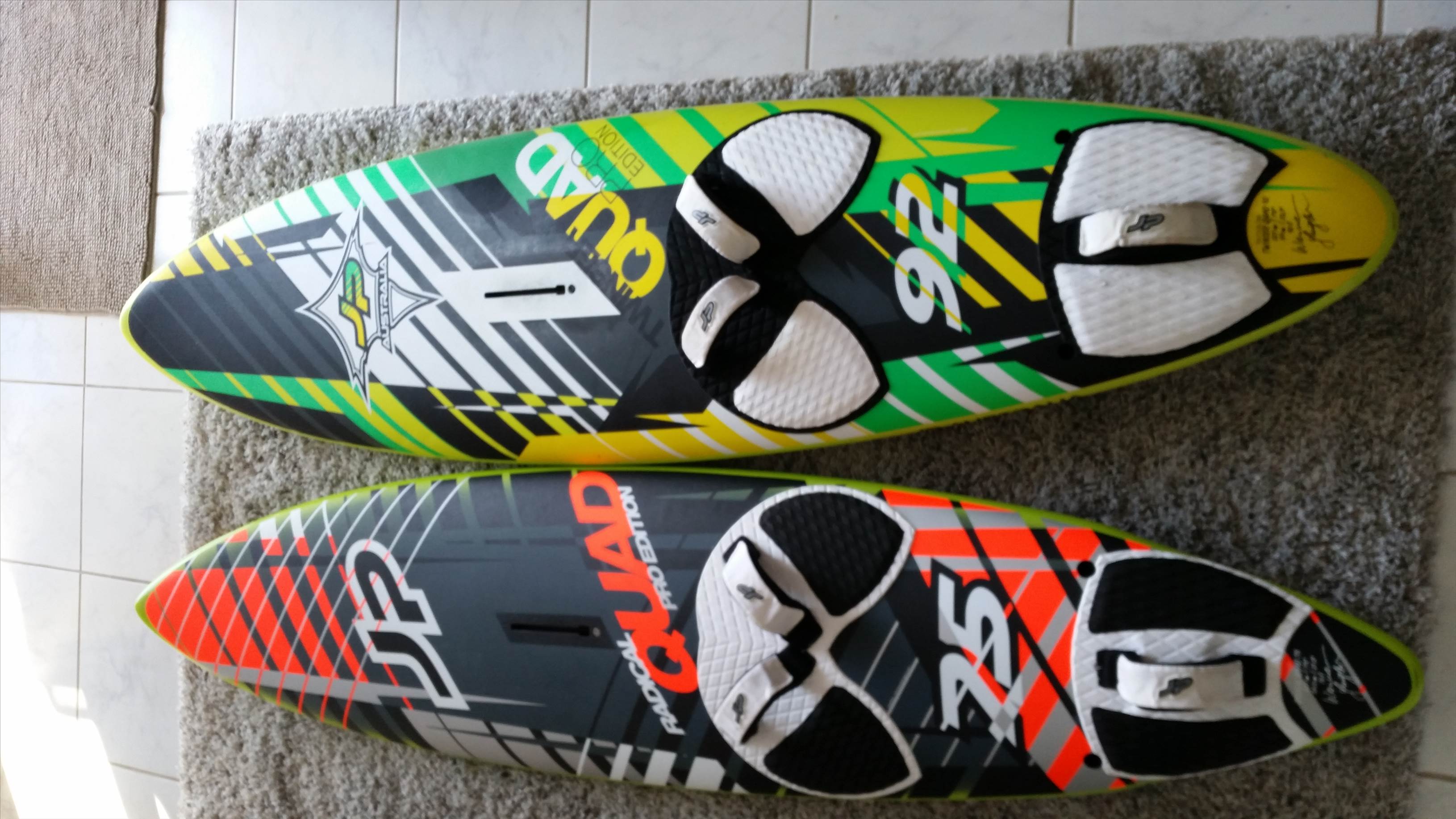 Comparing the 14 to 15 quads.. like bertie said pinnie nose and completely different tail but the flat section werner talks about is very long. Tried to get this in the picture. The entire rule (that you can see) is flat against the board. This is the area with the double concaves. The rails here are also sharper than the 14 quad. Hard to comment on the volume distribution because theyre different sizes but the 14 has a lot of tail volume.