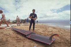 1981 Built some of the first “sinker” wave boards and was first to sail them at Hookipa, the sport’s premier surf-sailing venue.[note some, not the first- that is because Mark Paul did that....at least some say he did anyway..!]