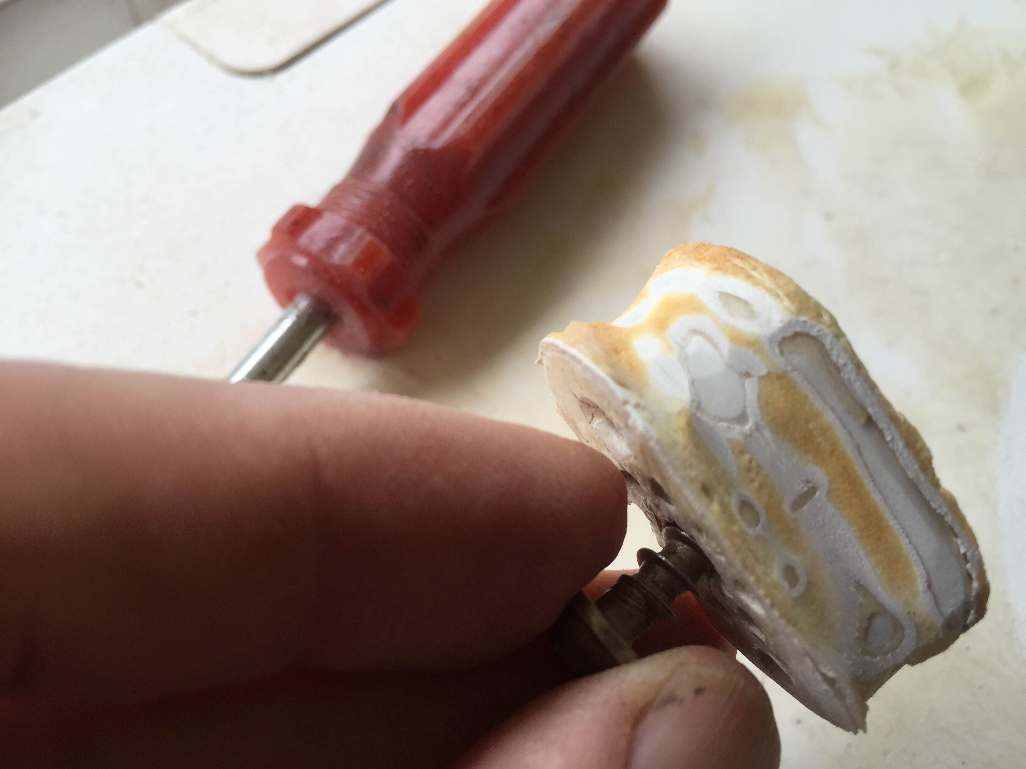 7) put a small volume of 403 powder and epoxy in the hole and place the plug in correct position