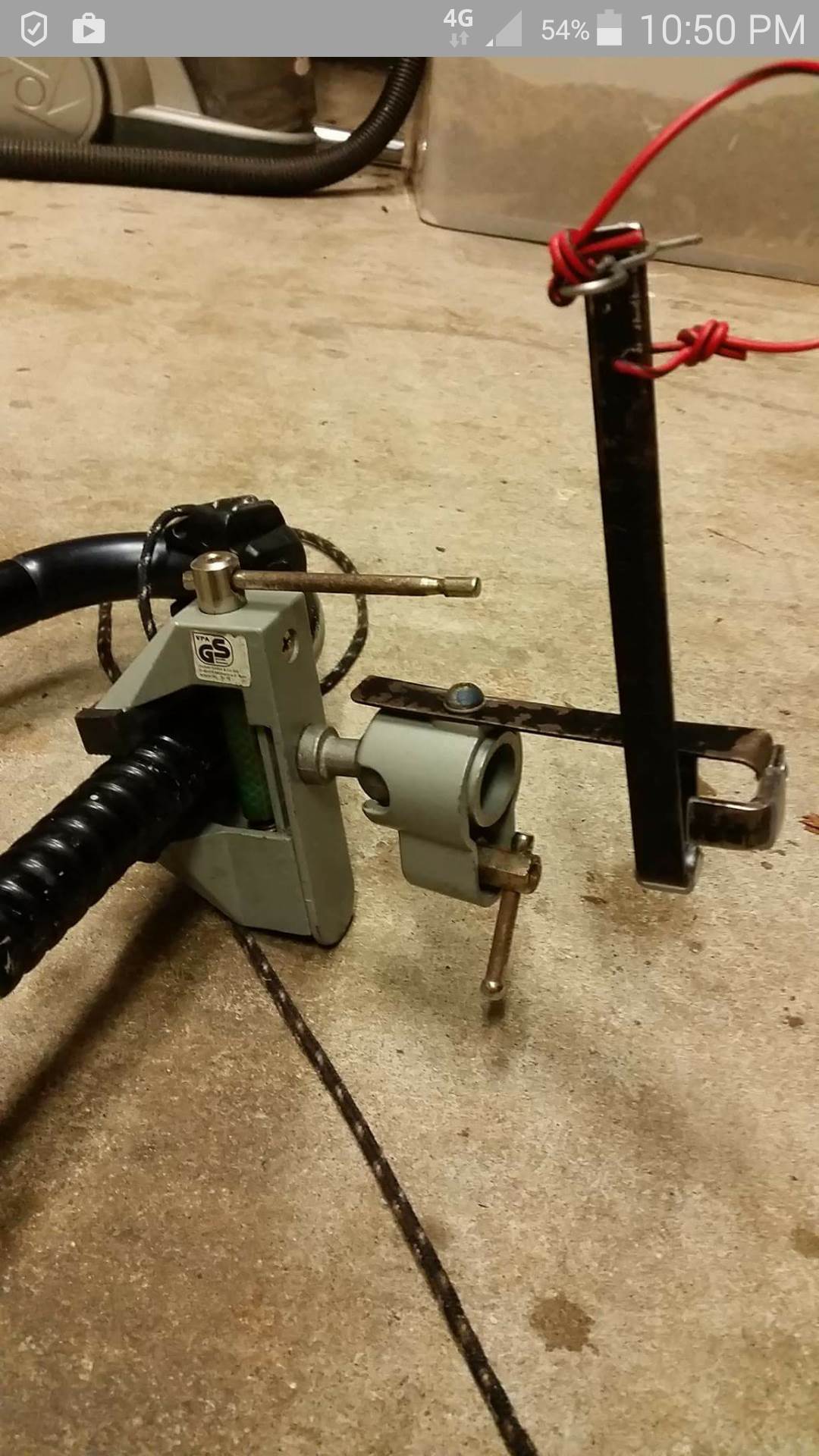 This is my own contraption... 10$ vise from Aldi, cut in half. Has a 360° joint and holds very strong. Tried it on the boom and mast.