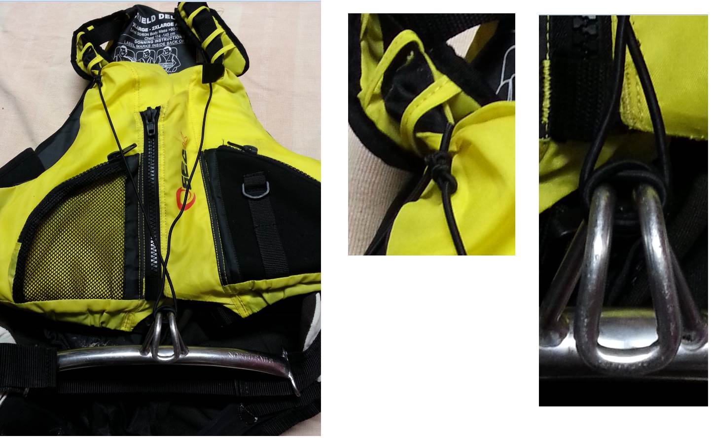 Besides, the salesman sold me an extra-large model to fit my 38” waist, but then the harness has a tendency to fall off . May be I should use suspenders, like for the pants. I’m sure I won’t look very… fashionable, but probably the life-vest will hide them…..But who cares anyway?