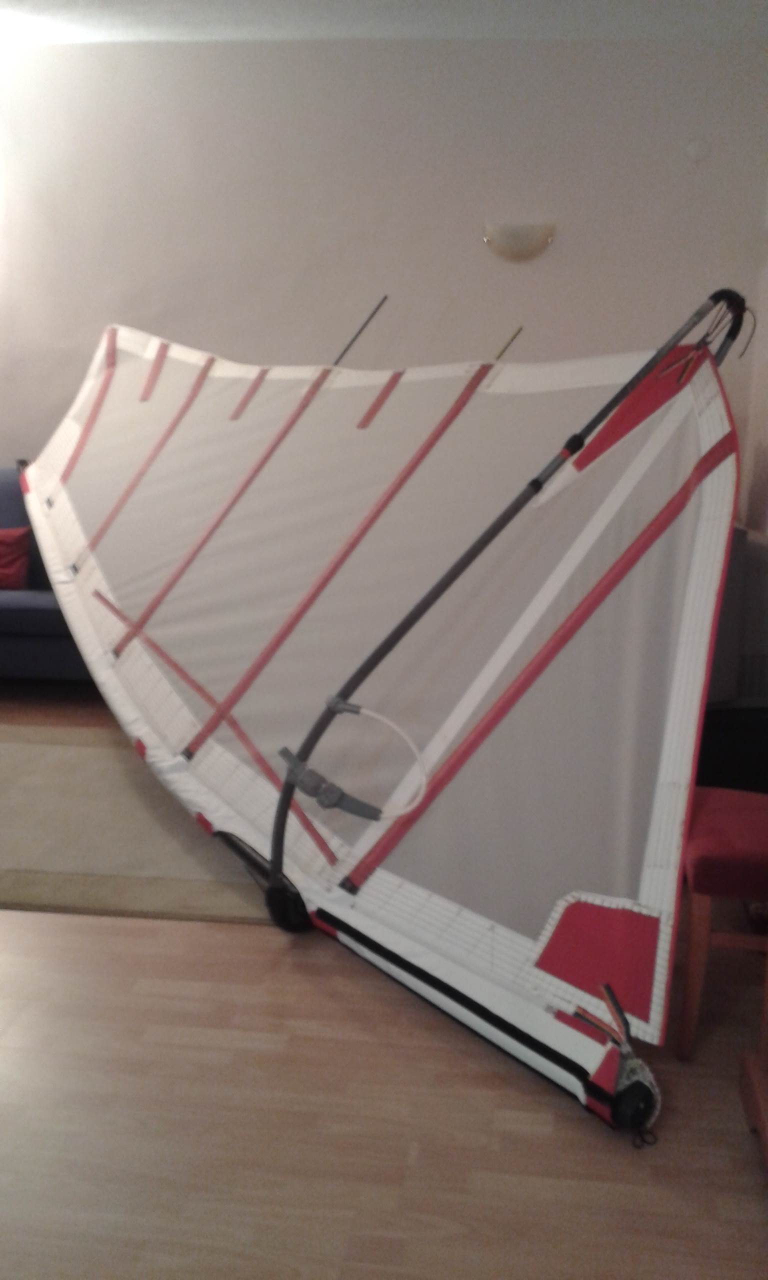 I have been surfing since 1988 and I am a windsurf instructor. Two years ago I decided to make my own windsurf sail. I watched many custom sails and factory made sails on youtube. For my project my uncle gave me a 55 years old professional sewing machine.(not zig zag-plain sewing ) Than I designed my room for sail making. My room area is only 15 square meters. I bought many large wood planks for sewing table. For sail material I used icy monofilm (not transparent ) and dacron fabric which are %100 polyester. Icy monofilm thickness is 150 micron and weight is 210gr/m2. Dacron thickness is 200 micron and weight is 220gr/m2. I produced 3 sails. My first sail is 4.8 m2 my second sail is 4.0 m2 and my third sail is 5.5 m2. I tested all my sails in heavy wind. (25 knots to 34 knots). Results are unbelievable. No demage all the stitchs are sturdy. Easy gybing easy water start and easy to roll the sail. It cost me 125-135 US dollars. (each sail). However I spent 40 days to make each sail. Because my workshop is to small and too much stitch. If you are interested in producing homemade sail I am ready to give you all the details.