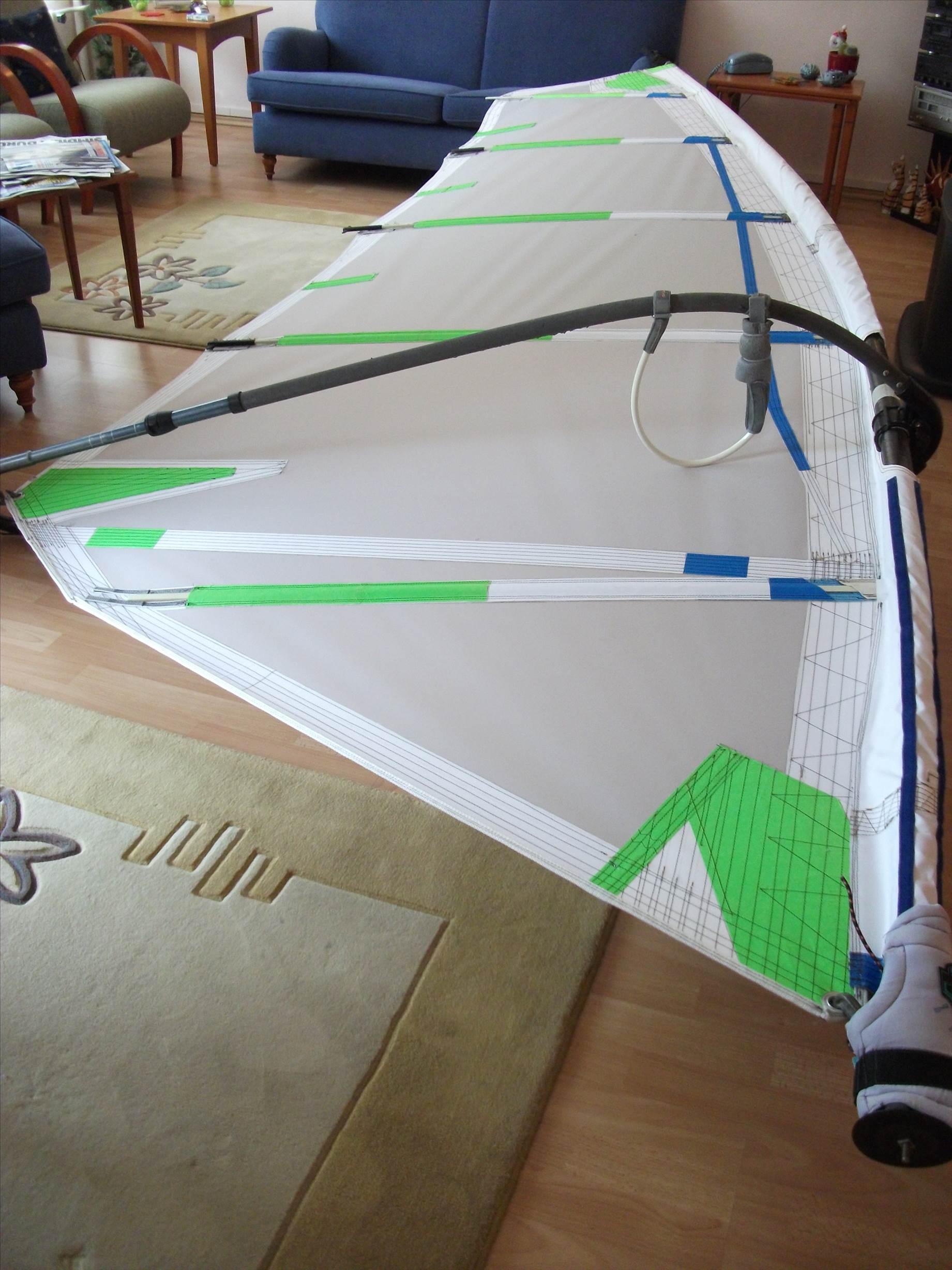 A friend of mine put his head through the window of his brand new sail. So he took it to the local sail making joint. A job was very well done, except for the fact that the sail maker replaced the clear polyester film with sail cloth ! We suggested to our mate to hire a guide dog to help him out while sailing