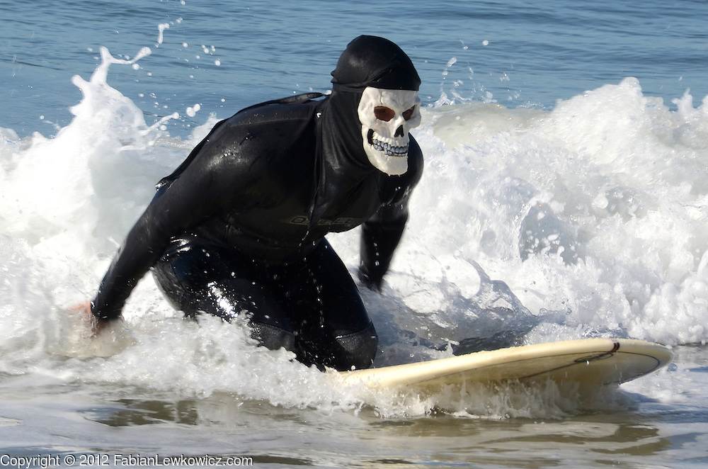 reminds me of a pick I saw of full length black wettie, black Gath with dark visor down. Jumping out on the highway to scare following windsurfers in cars