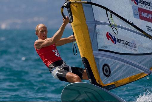 Everyone is specialized now and so we dont have the overall professional world title anymore. Every discipline is at such a high standard that you generally have to be a certain body shape for a particular sub sport of windsurfing. To win the gold medal in China he took his body down a particular path that probably isnt particularly relevant to other types of windsurfing. In the photo we can see he needed to be super lean and aerobic and strong for light wind displacing and early planning. Whereas Antoine Albeau needs a different body shape for slalom blasting.