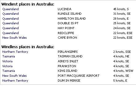 Whenever I read the Seabreeze home page during login, the windiest place in Australia always appears to be Lucinda and it almost always appears to be blowing 45 knots. Any comments from the QLD crew? Could it be a Seabreeze website error, or does the place get hammered every day?