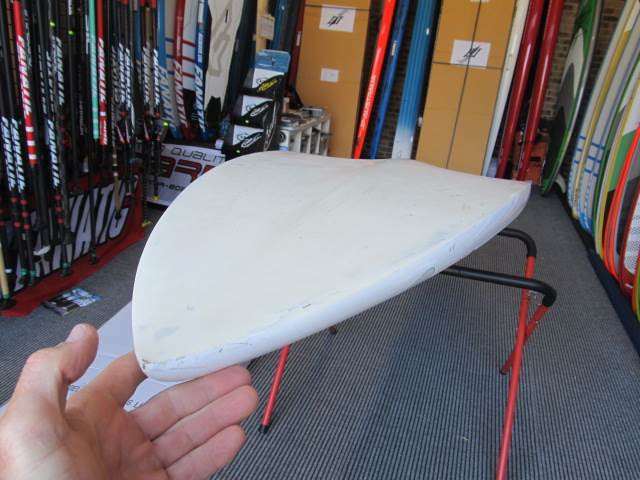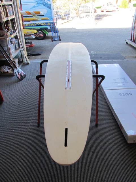 The other Naish I have is similar to the centreboard area and then runs out to a square tail with twin fins. I lent it to my bro and it came back covered with peeling white paint so it needs a redo. Bruce Wylie used it in the '84 Rip Curl and said in the marginal planing stuff it was as fast as the early concave raceboards that Robby was using (with the board I now have as a spare and high-wind board) because it had so much planing surface. The bizarre thing is that it gybes beautifully, which you wouldn't expect from a square tailed board 13' long.