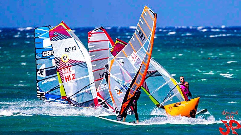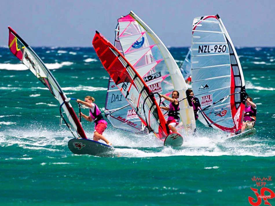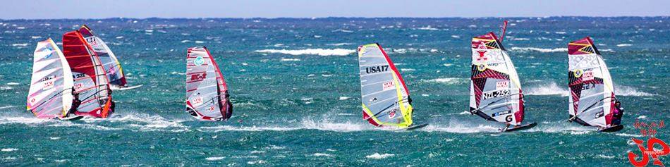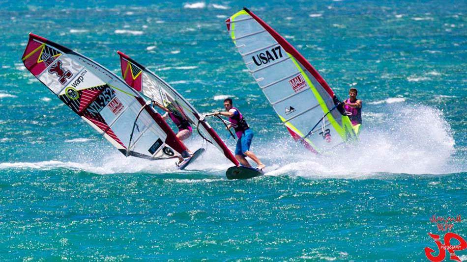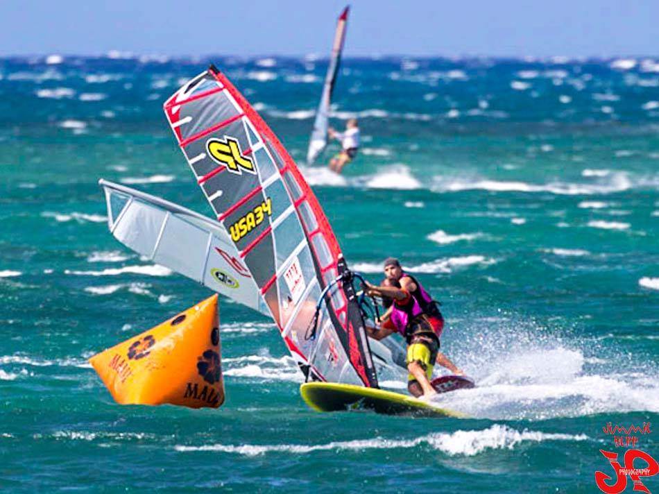 The Meanline Fin Slalom challenge started in light, but steady, North winds. The course set, with one long reaching leg, by request of the sponsor (Meanline Fins). Twenty five heats were sailed, in windy 7.0m sails making for a day of exciting racing conditions. This completed the "age group" section of the racing. Each division was full of fierce competitors with Dan Ellis (North Sails and Meanline fins tester), Phil McGain (past PBA world champion and owner of Maui Sails) and Peter Slate (Head tester for North Sails) to just mention a few of the stars at the event.