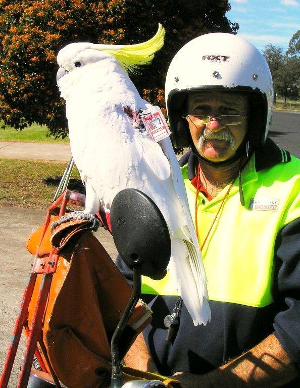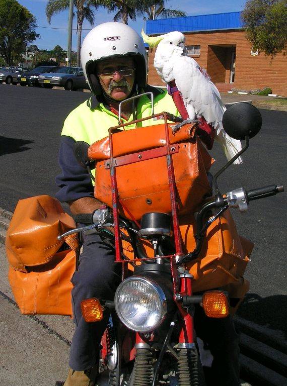 Cocky swayed forward but stuck on.I loved it as I used to be a postie and cockie even had an ID tag especially made for him..